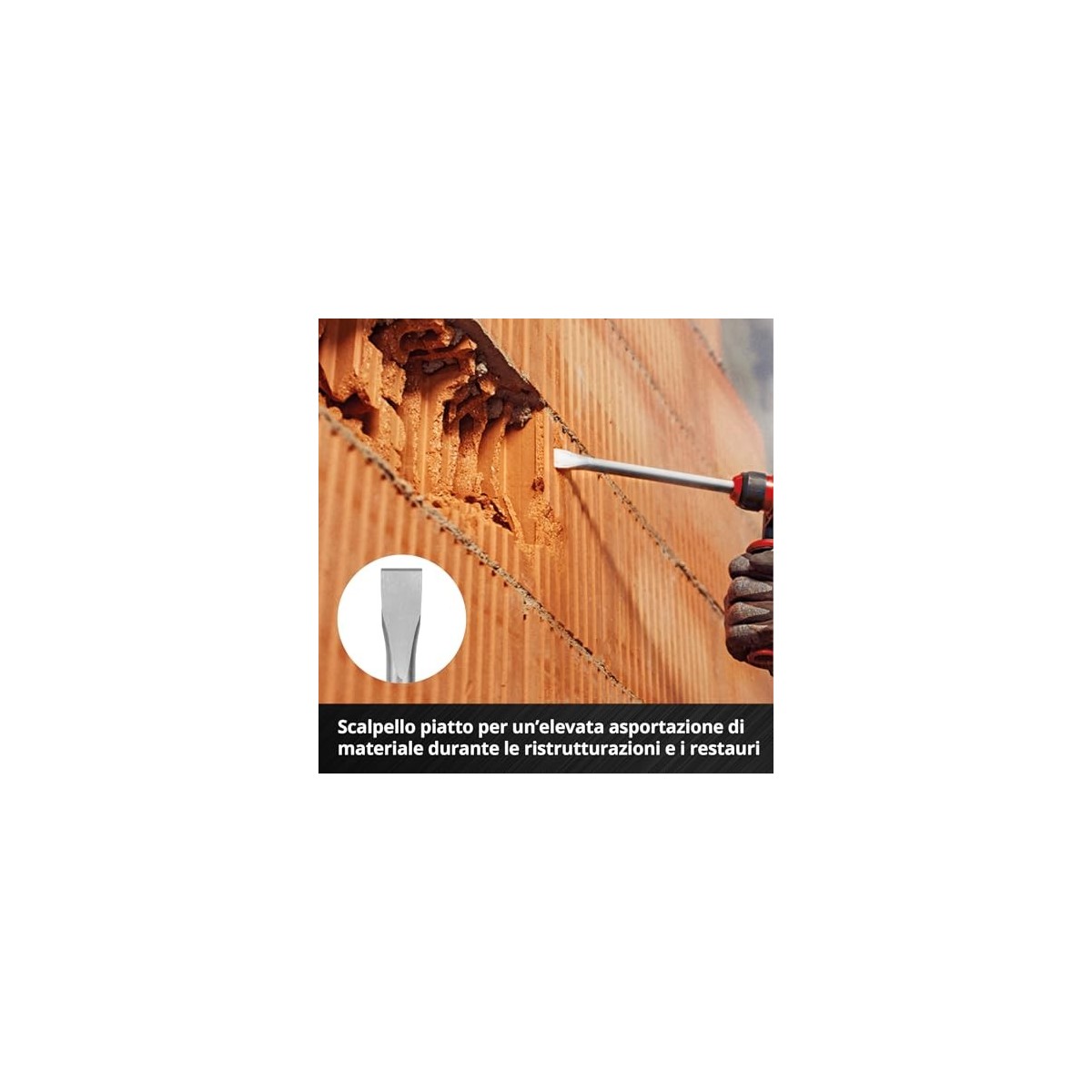 - Scalpello a vanga - Con il suo ampio bordo di taglio di 40 mm, lo scalpello a vanga lungo 400 mm assicura un'elevata velocit di rimozione nella muratura e nella malta.