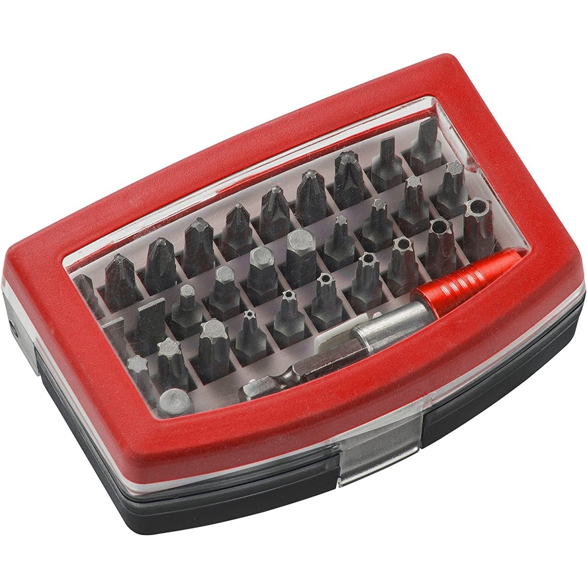 BOX INSERTI, 32 PEZZI, ACCIAIO CROMO VANADIO, IN PREZIOSA CASSETTA IN PLASTICA, CON PRATICO CLIP PER CINTURA, 30 INSERTI, ATTACCO1/4" ATTACCO ESAGONALE SECONDO ISO 1173, C 6.3, 25 MM, 1 SUPPORTO CAMBIO RAPIDO, 1 ADATTATORE BUSSOLE