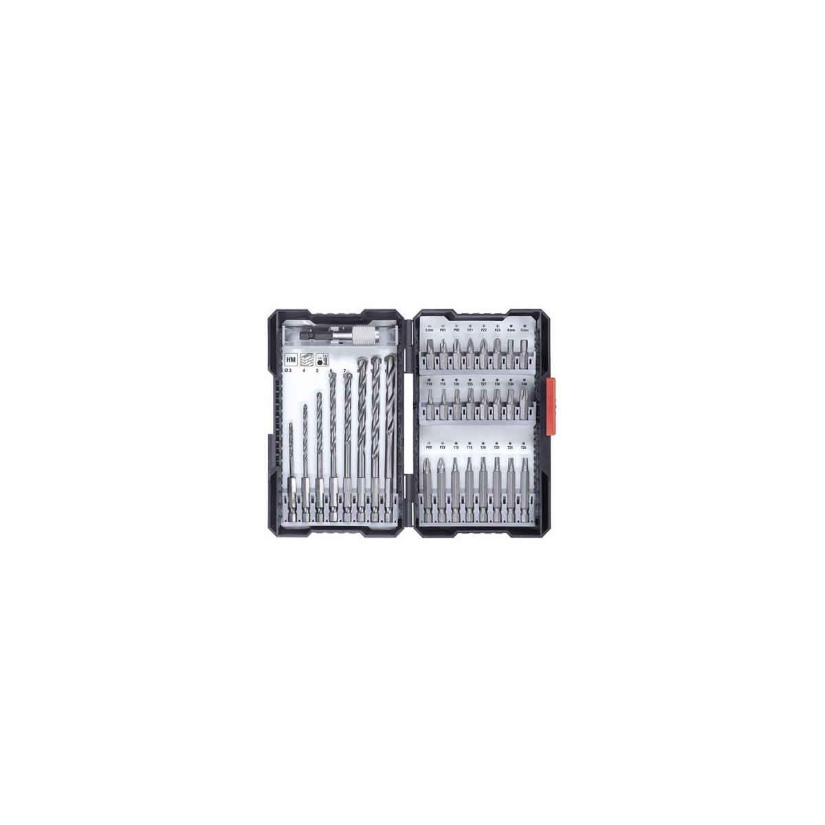 Inserti inclusi: 1 x piatto 5.0 mm, PH-1, PH-2, PZ-1, PZ-2, PZ-3, T-10, T-15, T-20, T-25, T-27, T -40 e 2 x T-30 in lunghezza 25 mm, 1 x PH-2, PZ-2 e 2 x T-15, T-20 e 2 x T-25 in lunghezza 50 mm.