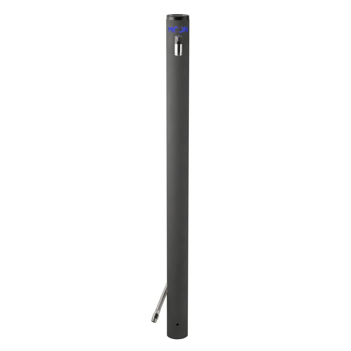 Fontana a colonna tonda da giardino con LED notturno a ricarica solare in alluminio verniciato a polveri poliestere antigraffio, completa di rubinetto cromato e verniciato con aeratore “ECO” e sella portatubo in acciaio inox.