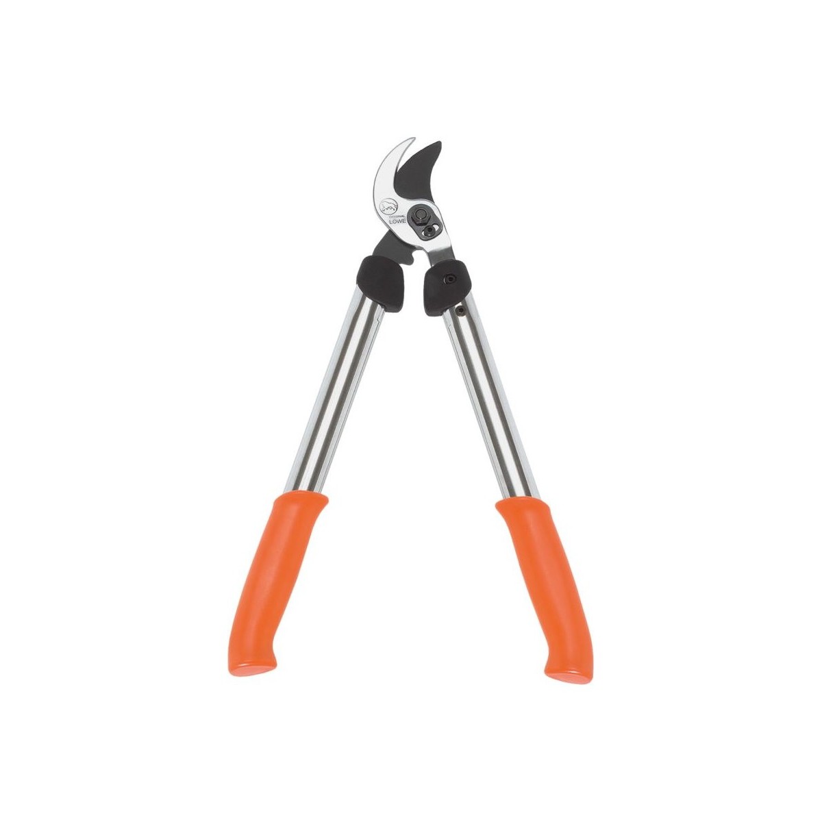 A taglio passante, con ammortizzatore paracolpi. Permette il taglio di rami di grosso spessore bloccando il ramo durante la recisione. Tutti i pezzi sono facilmente sostituibili. Lunghezza: 65 cm Peso: 965 g Diametro massimo di taglio: 40 mm