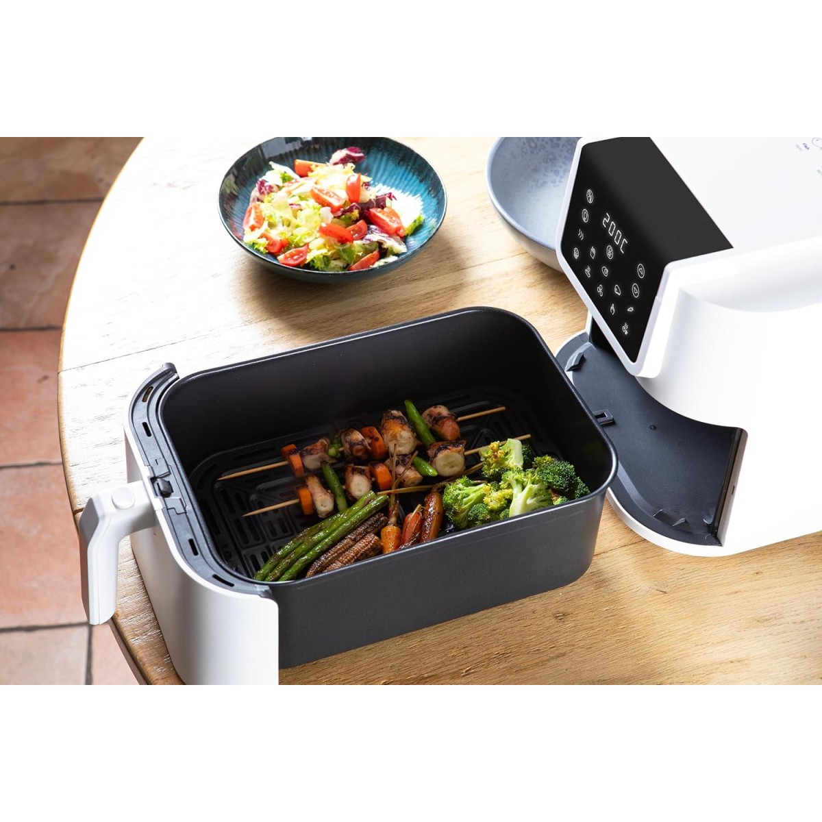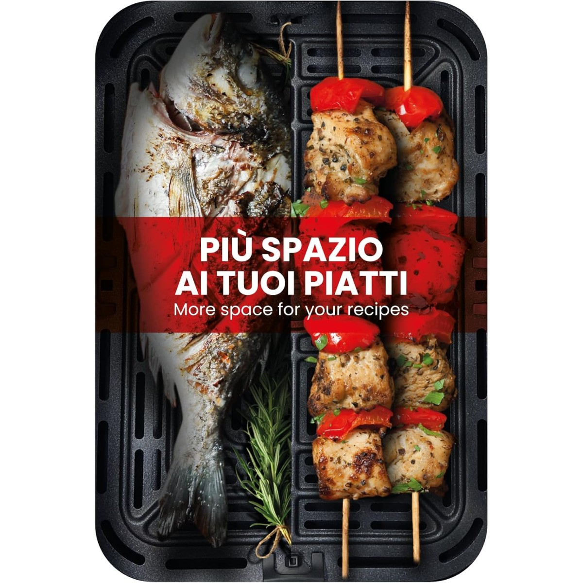 EXTRA PROFONDITÀ - La friggitrice ad aria ha un'esclusiva profondità per cuocere al meglio alimenti dalla forma allungata come spiedini, pesce, pollo e altro. Poco ingombrante in larghezza, l'ideale per cucine piccole!
