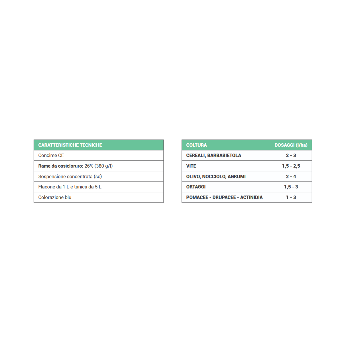 - Rame da ossicloruro: 26% (380 g/l)