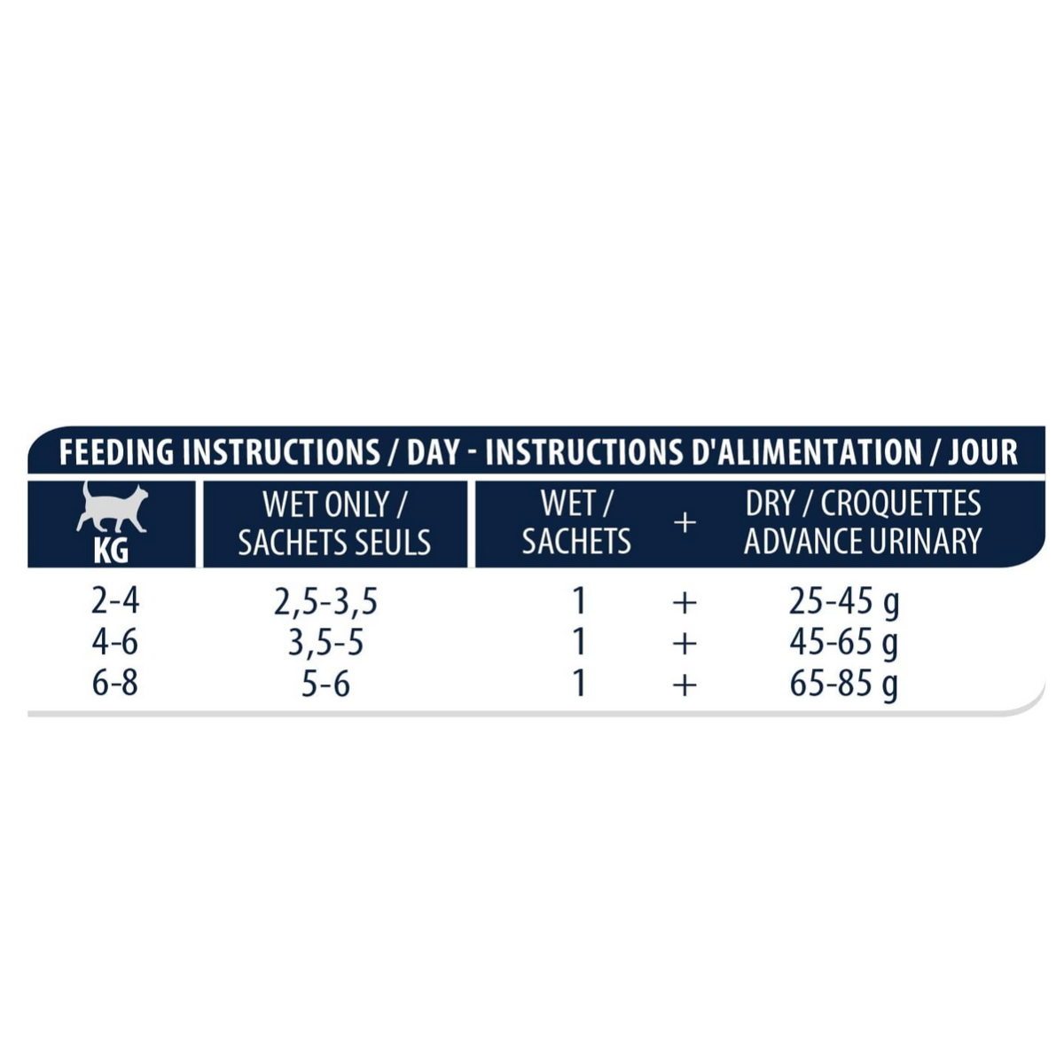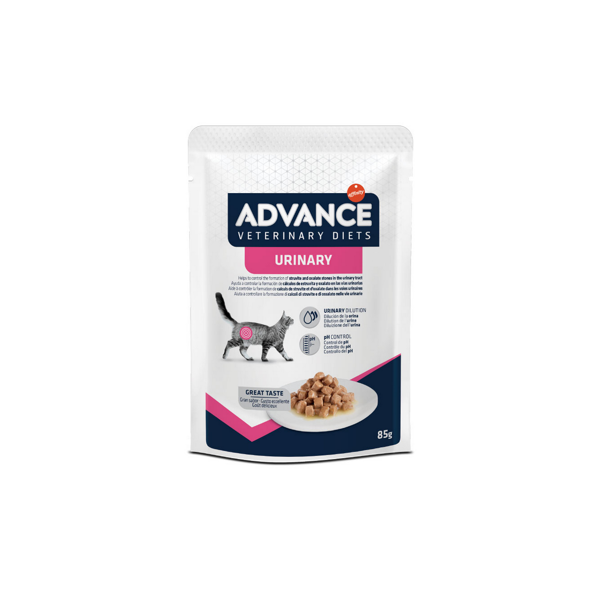 Advance Diets Cat Urinary è un alimento dietetico completo per gatti adulti, formulato con proprietà di sotto saturazione dell'urina per la struvite, proprietà acidificanti dell'urina e basso livello di magnesio, indicato per la dissoluzione di calcoli a base di struvite e per la riduzione delle recidive di calcoli di struvite.