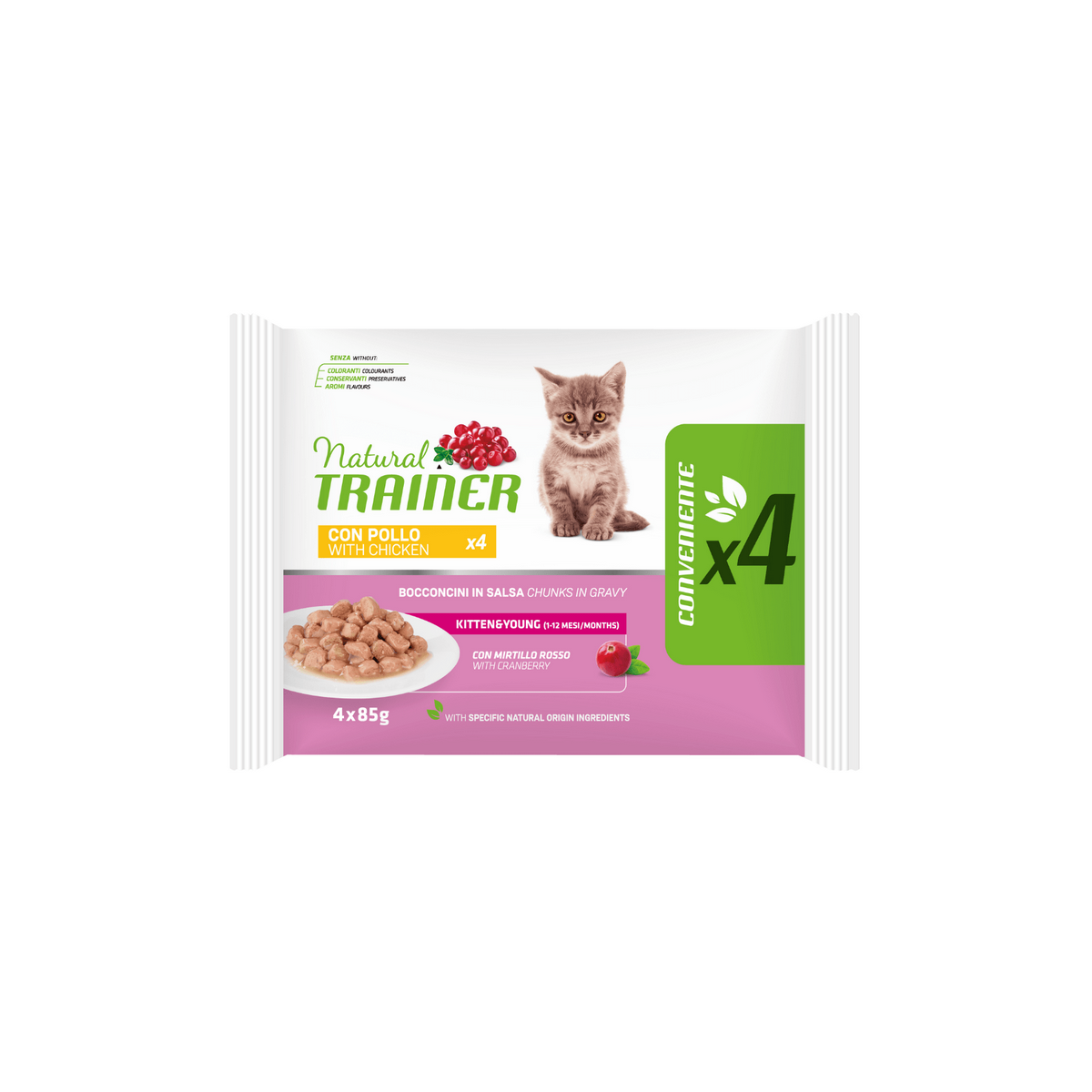 Non ci sono altri prodotti nel carrello. Gatto Bocconcini Flowpack Kitten 4x85gr Natural Trainer