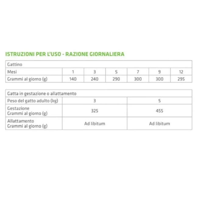 Modalità d'uso: Conservare in frigorifero dopo l'apertura e utilizzare entro 48 ore. Per aiutare a mantenere il tuo gatto nella condizione corporea ideale, adattare le quantità di cibo giornaliere a seconda del livello di attività, condizione fisica e dei bisogni individuali del felino. Lasciare sempre a disposizione acqua pulita e fresca. Per tenere sotto controllo la salute del tuo gatto consultare regolarmente un veterinario.