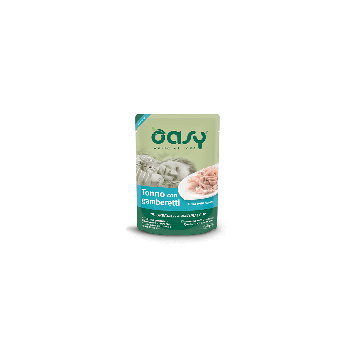 Non ci sono altri prodotti nel carrello. Gatto - Specialita naturale Tonno e Gamberi 70gr OASY