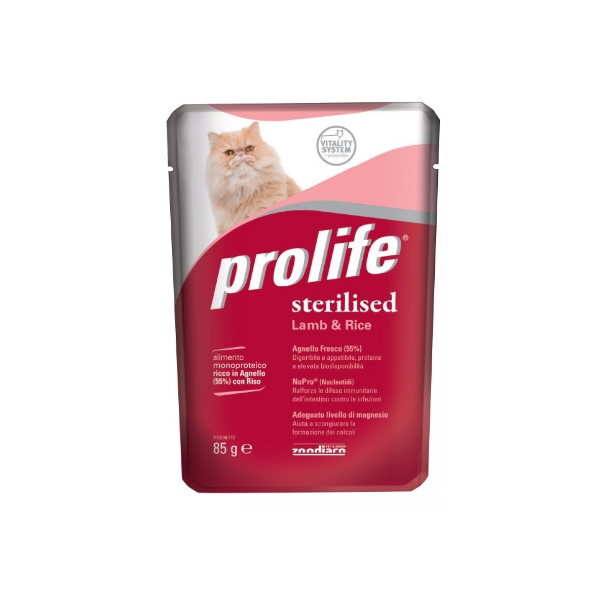 Carne fresca di agnello 55%, Brodo, Riso 5%, Cellulosa 3%, Sostanze minerali, Carbonato di calcio, Prodotto del lievito (NuPro® – elevata concentrazione di Nucleotidi) 0,41%, Olio di semi di girasole, Lievito, Yucca schidigera 0,1%, Bio-Mos® – Mannano-oligo-saccaridi – 0,04%.