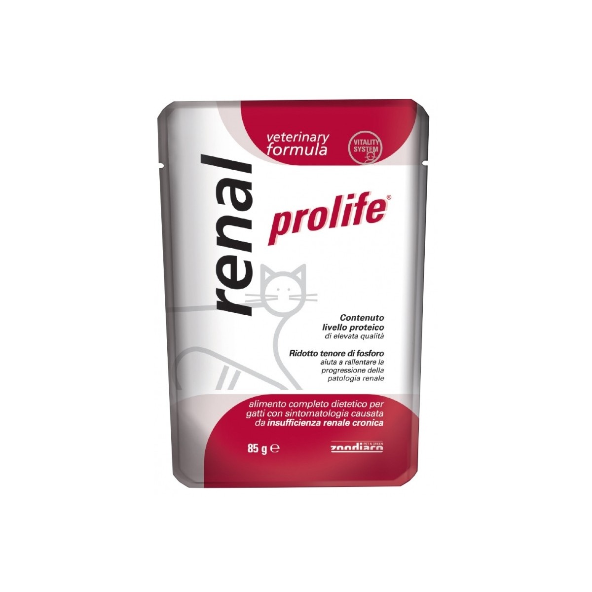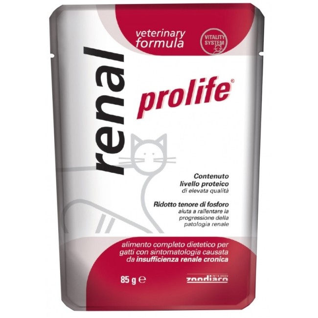 Prolife Renal è l'alimento dietetico specifico per il gatto con sintomatologia causata da insufficienza renale cronica. Il basso livello di fosforo unito al ridotto tenore di proteine, di elevata qualità, ralle la progressione dell'insufficienza renale mentre i Fos e i Mos creano un ambiente ottimale per la flora gastroenterica, aiutando a frenare lo sviluppo di ulcere gastriche. Il sistema antiossidante a base di bioflavonoidi (polifenoli), selenio, taurina, Vit. E e C, protegge i reni e l'intero organismo dall'attacco dei radicali liberi e rafforza il sistema immunitario.