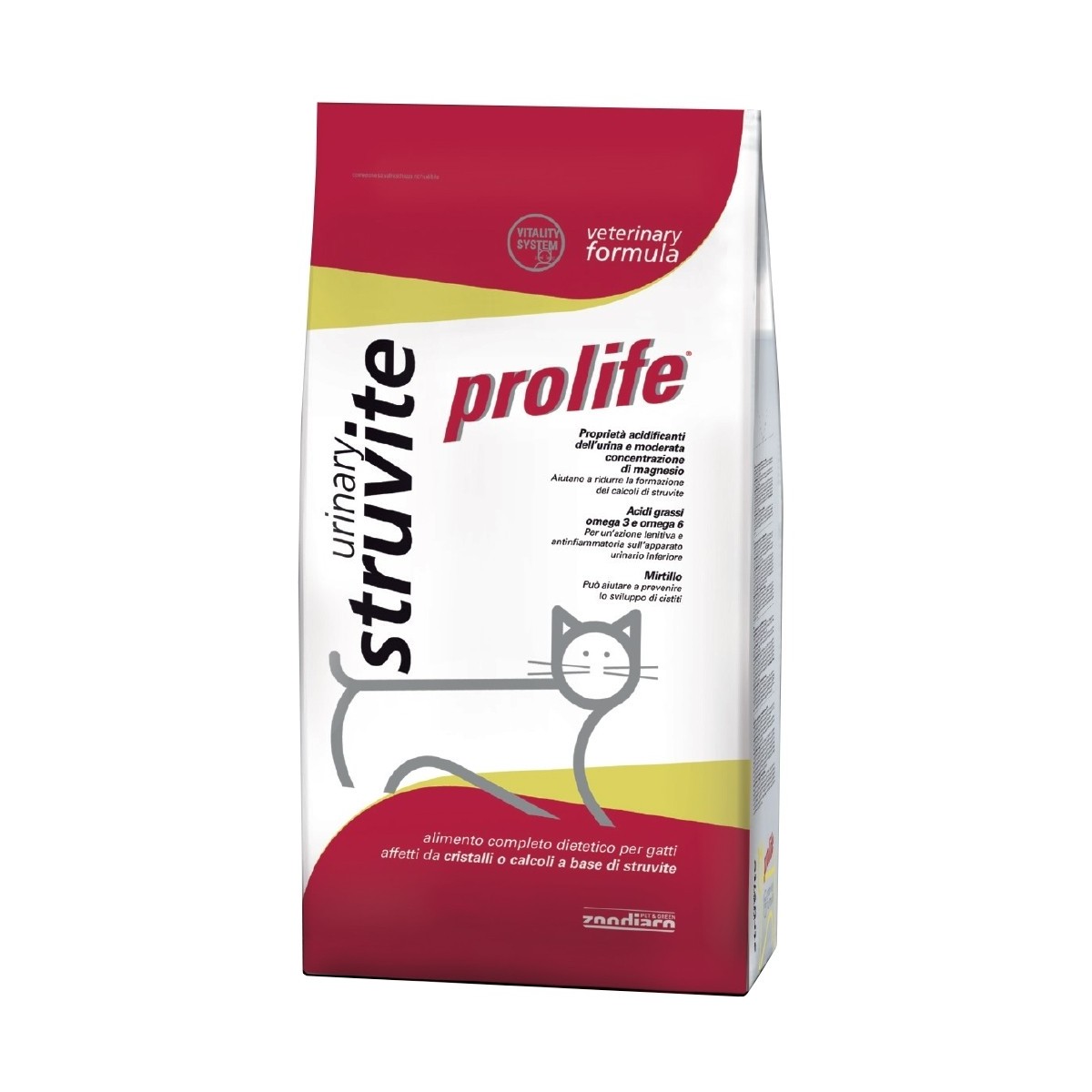 Prolife Urinary Struvite dry è l’alimento completo dietetico specifico per il gatto con sintomatologia causata da cristalli o calcoli a base di struvite e malattie dell’apparato urinario inferiore. Le proprietà acidificanti dell’urina (DL Metionina e Bisolfato di sodio) e la moderata concentrazione di magnesio supportano la dissoluzione dei calcoli e aiutano a ridurre la formazione di recidive. Il mirtillo può aiutare a prevenire lo sviluppo di cistiti.
