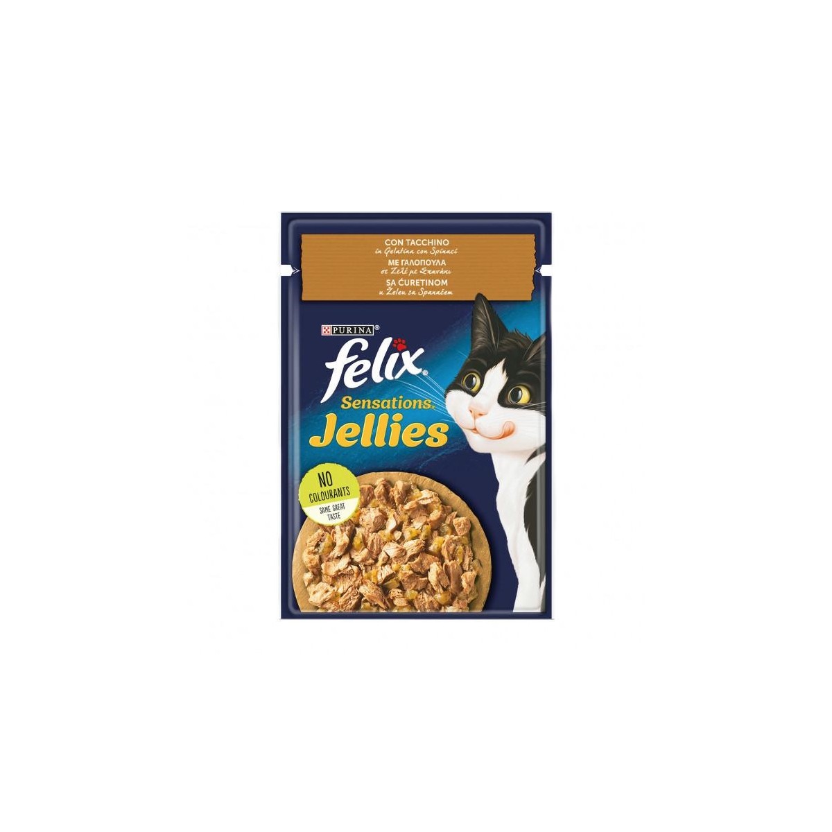FELIX Sensations Jellies Gatto con Tacchino in Gelatina e Spinaci 85g