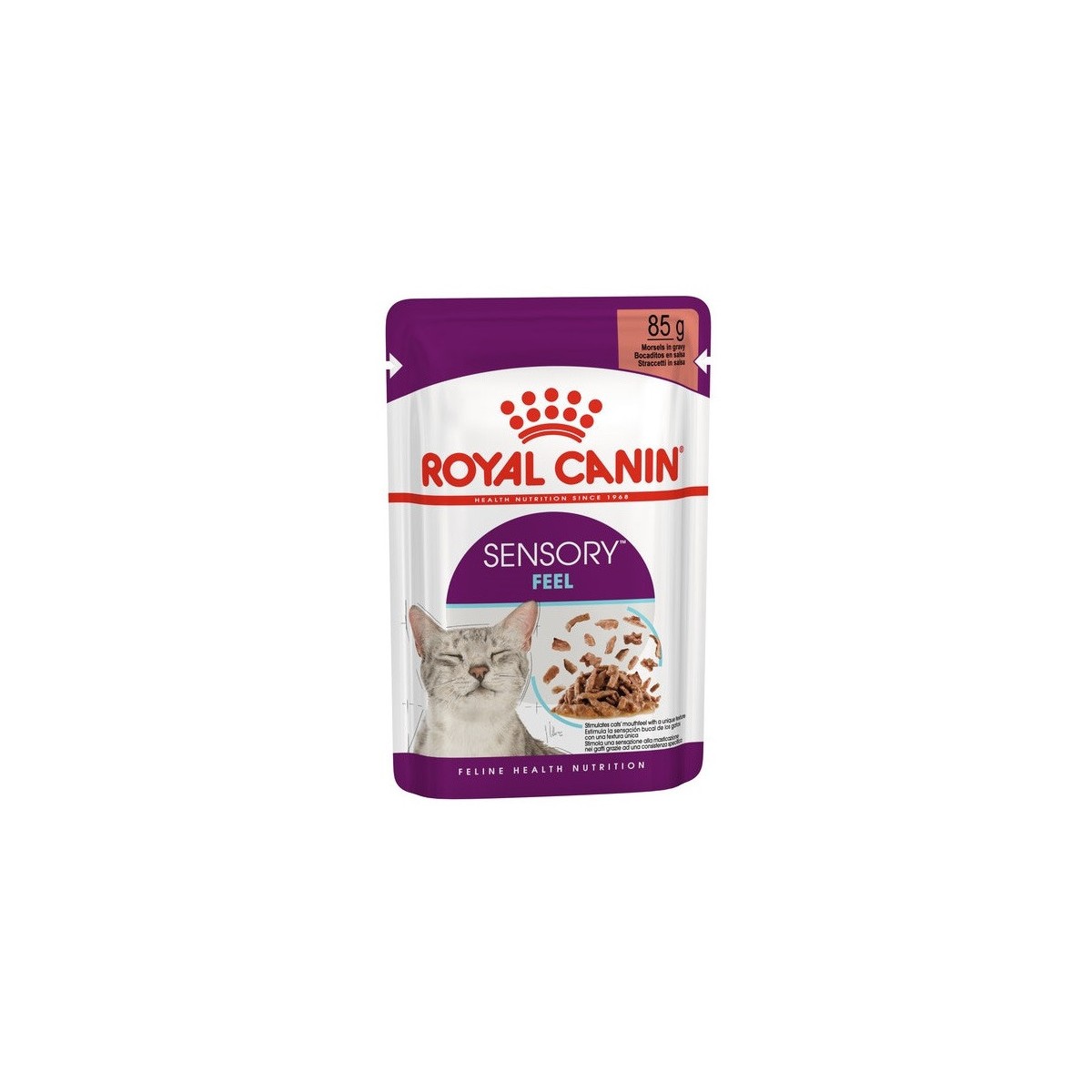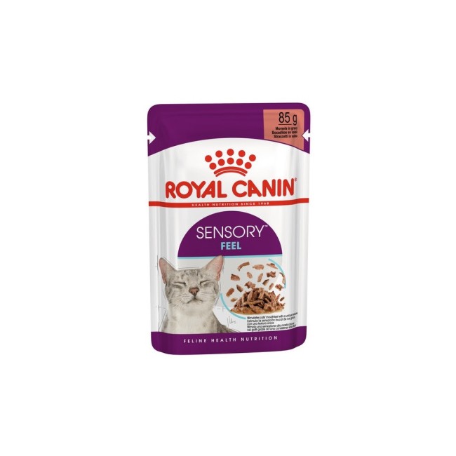 ROYAL CANIN® Sensory Feel è una formula altamente attraente con trame uniche per aiutare a stimolare il senso della bocca del tuo gatto (la sensazione che il cibo stimola).