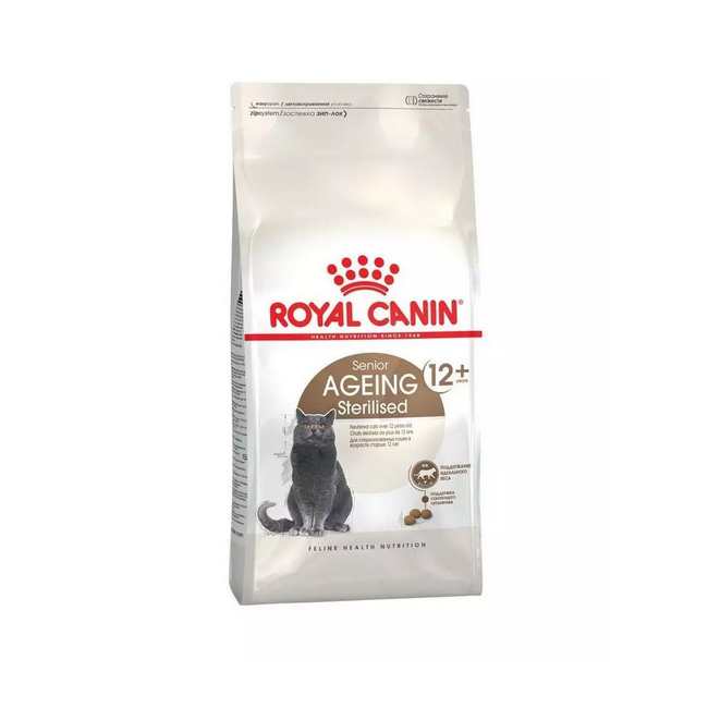 Alimento COMPLETO ed equilibrato per gatti anziani sterilizzati con oltre 12 anni di età.