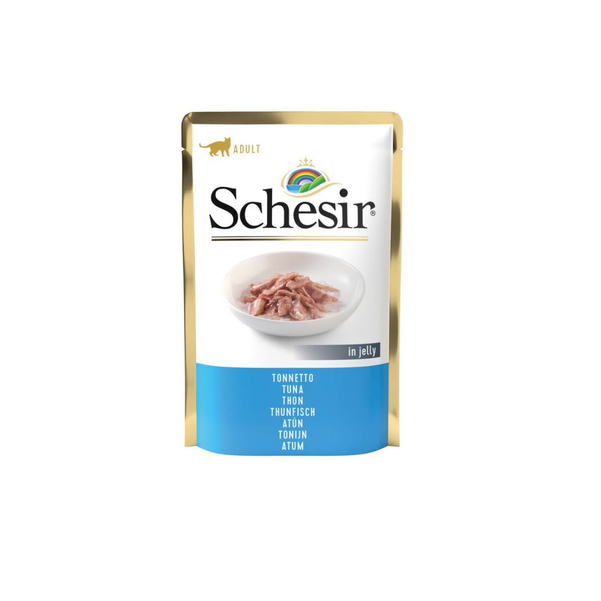 Una ricetta Schesir a base di veri filetti di delizioso tonnetto, preparati in gelatina, per soddisfare il gusto dei gatti che prediligono il sapore del mare, ma con una consistenza più compatta nella ciotola.