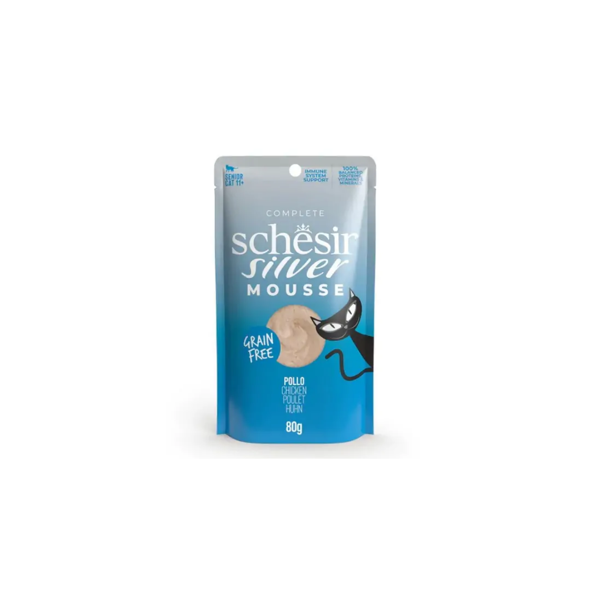 Dagli 11 anni di vita il gatto ha bisogni nutrizionali specifici legati all'età, ed è importante che l'alimentazione risponda alle sue esigenze. Schesir Silver è la linea di ricette complete e bilanciate per i gatti dagli 11 anni, pensate per supportare il funzionamento del sistema immunitario. A base di proteine da vere carni unite ad altri preziosi ingredienti. Senza cereali.