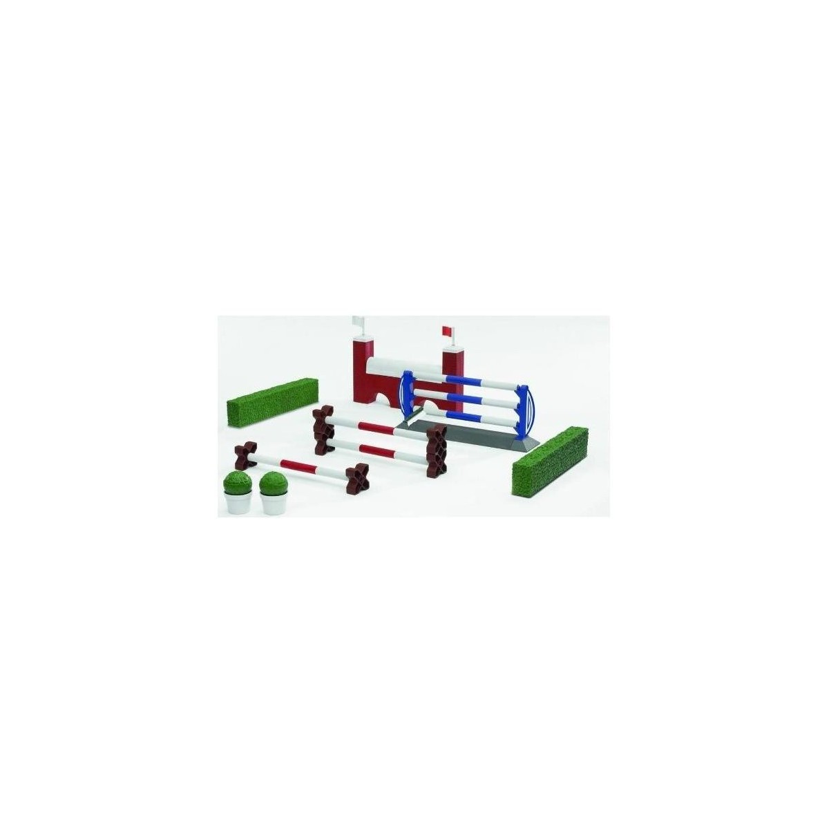Bruder accessori per set modellismo 62532 - Ostacoli per Equitazione.Contiene :1 ostacolo,2 siepi,2 vasi con piante, stand a forma di X, 3 Cavalletti, Ostacolo parete. Età 3+.