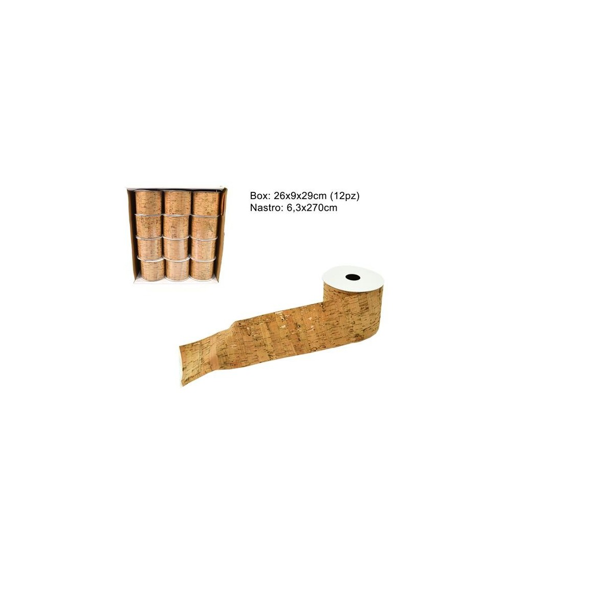 Nastro in sughero. Misure: 6,3 x 270 cm. Confezione singola.