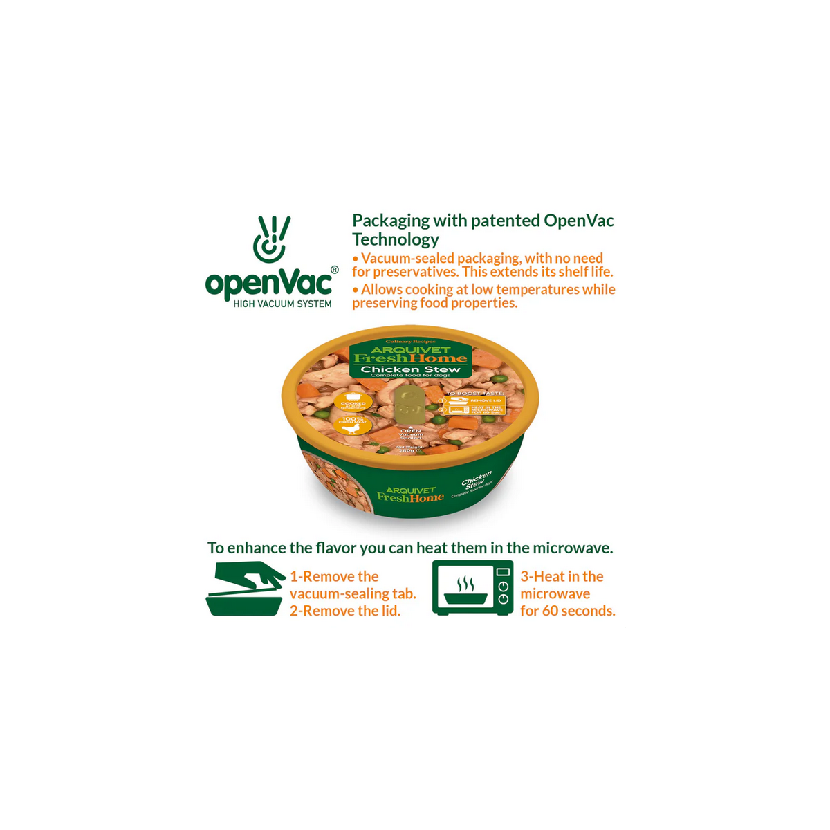 Confezione con tecnologia brevettata OpenVac. Sigillato sottovuoto senza bisogno di conservanti, prolungandone così la durata di conservazione. Permette di cucinare a basse temperature preservando le proprietà degli alimenti.