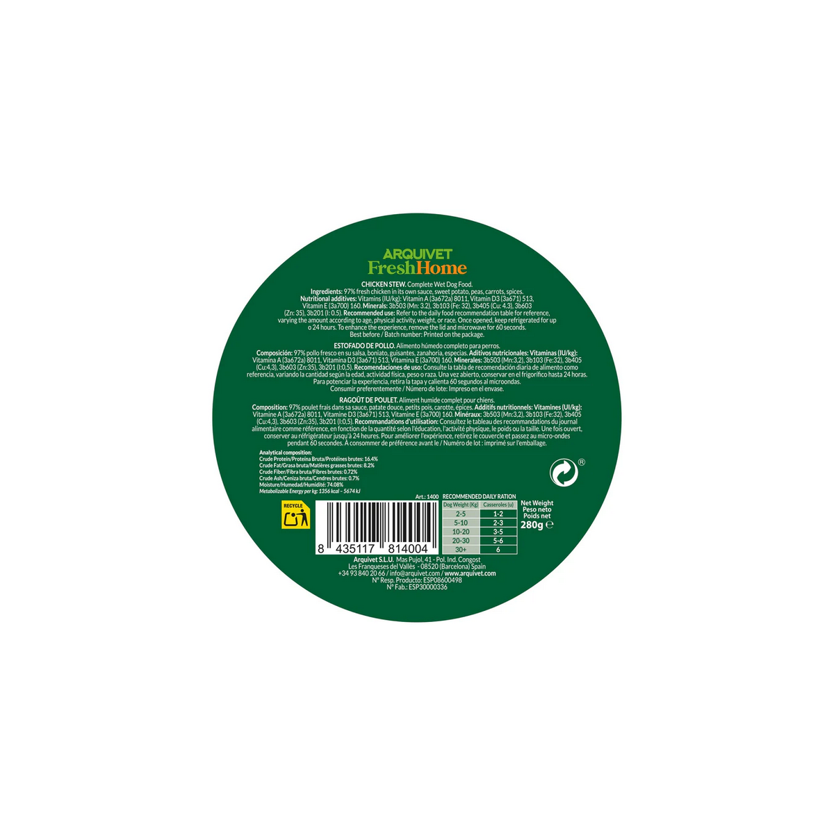 Umido Cane - Stufato Pollo 280 gr Arquivet Fresh
