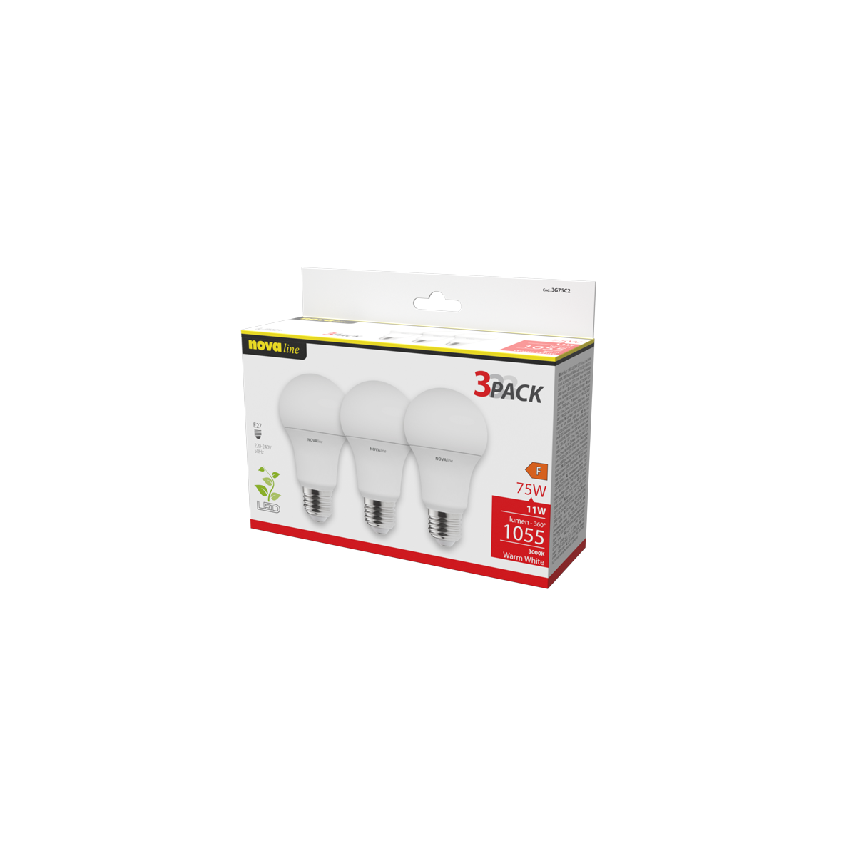 Tripack Led Goccia 11W E27, Luce Calda 3000K 3G75C2 Novaline