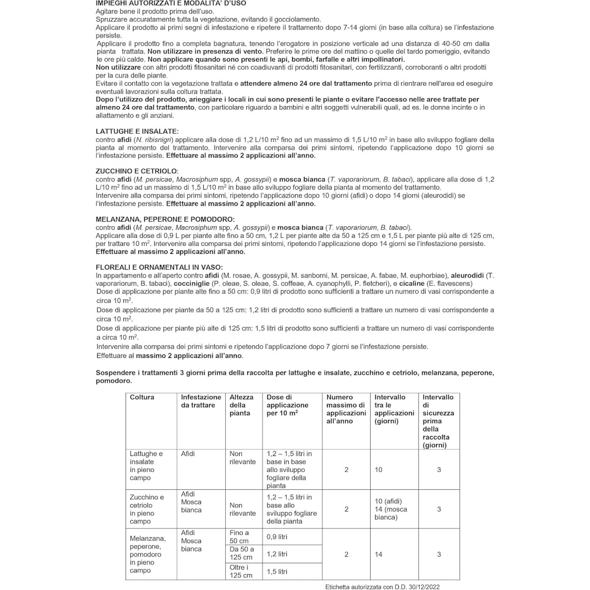 Questi insetti sono comuni parassiti delle piante edibili, da fiore e ornamentali. Il prodotto agisce rapidamente, facendo smettere gli insetti di nutrirsi dopo 1-2 ore dall'applicazione, e gli effetti sono visibili già dal giorno successivo al trattamento