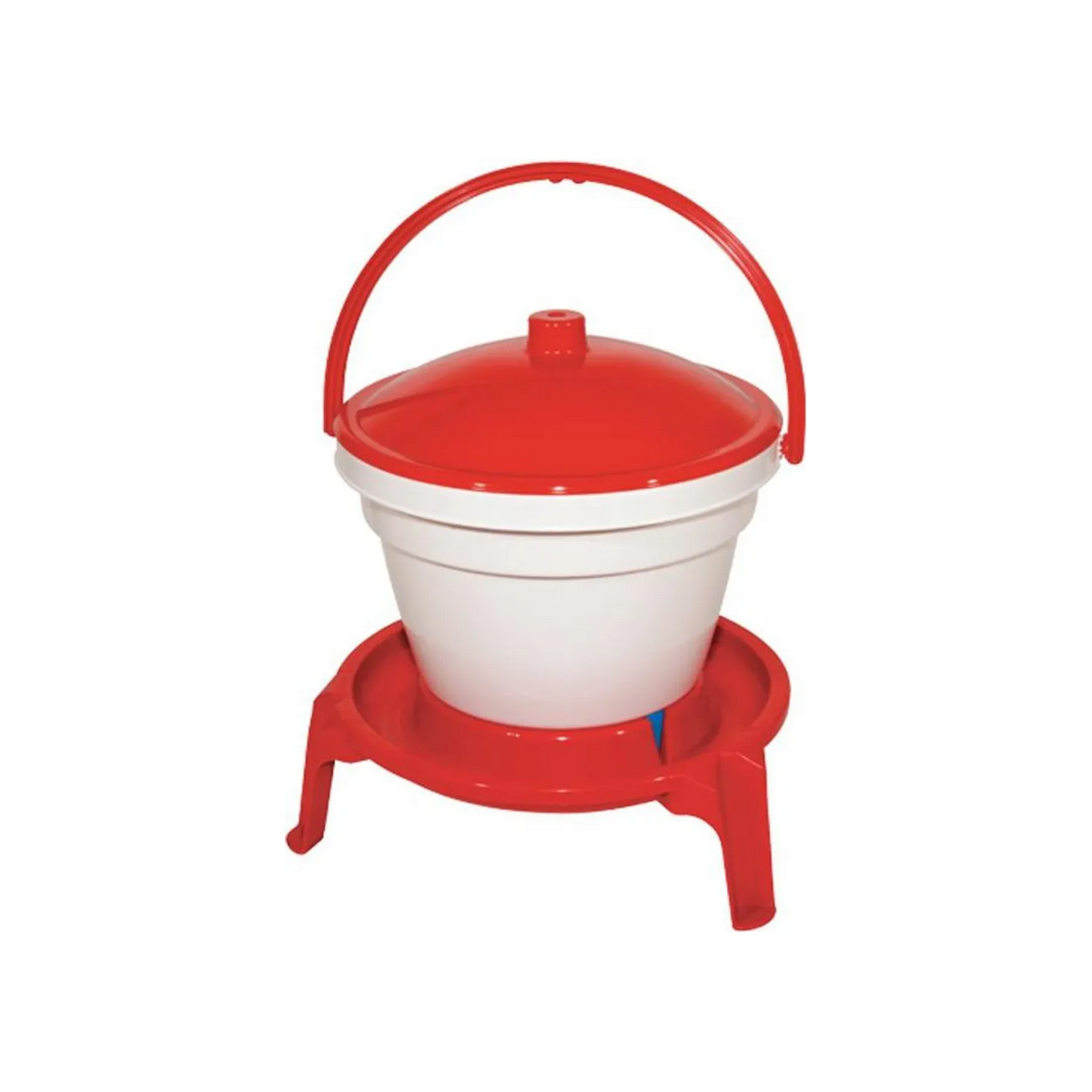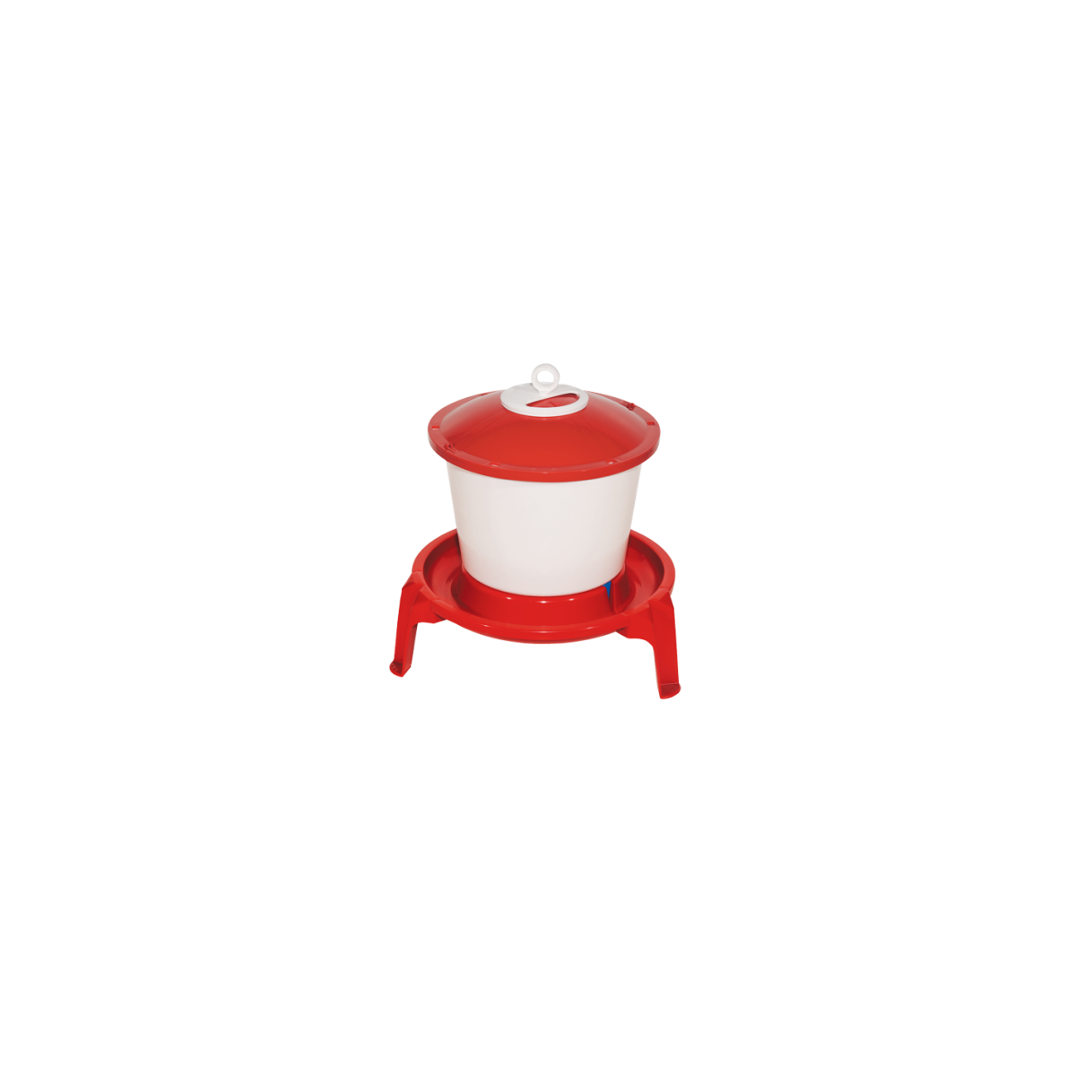 Abbeveratoio per pollame rialzato da resistenti gambe per offrire stabilità, sicurezza e maggiore igiene. Facile da pulire, comodo da riempire grazie alla mezzaluna posta sul coperchio. Galleggiante automatico per assicurare il livello d’acqua ottimale. Materiale plastico bianco per rallentare la formazione di alghe.