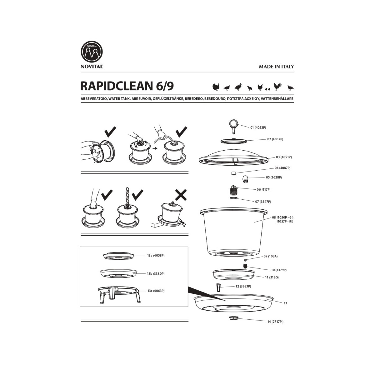 Abbeveratoio a Serbatoio Rapid Clean LT 12 con Gambe NOVITAL