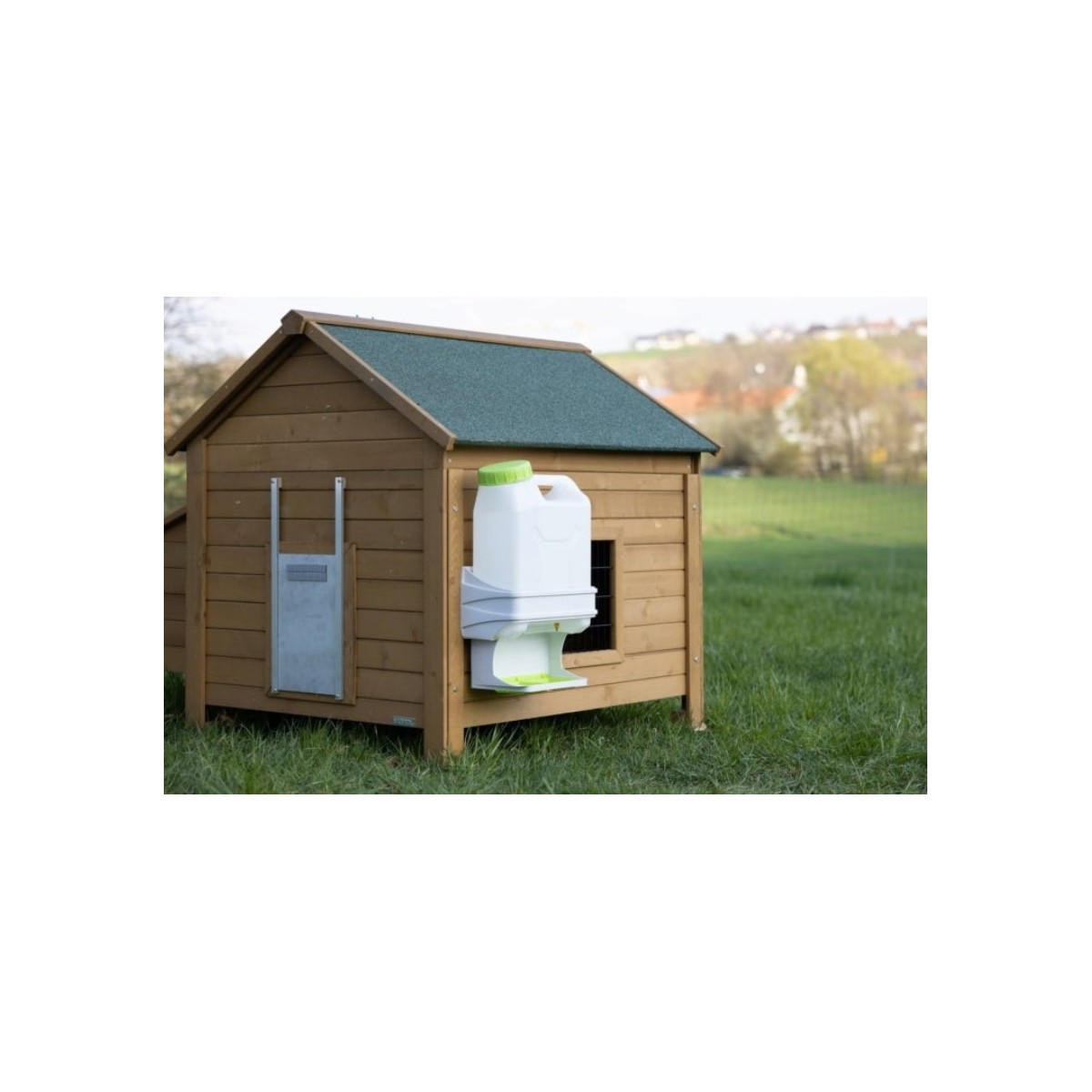 - Montaggio a parete sicuro e salvaspazio, ideale per i pollai più piccoli.
