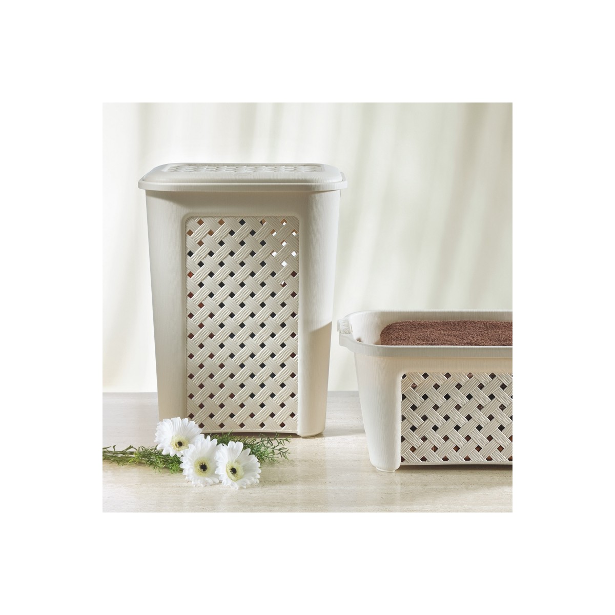 Cesto portabiancheria Arianna dal caratteristico motivo ad intreccio dotato di coperchio. Capacità 50 Litri.