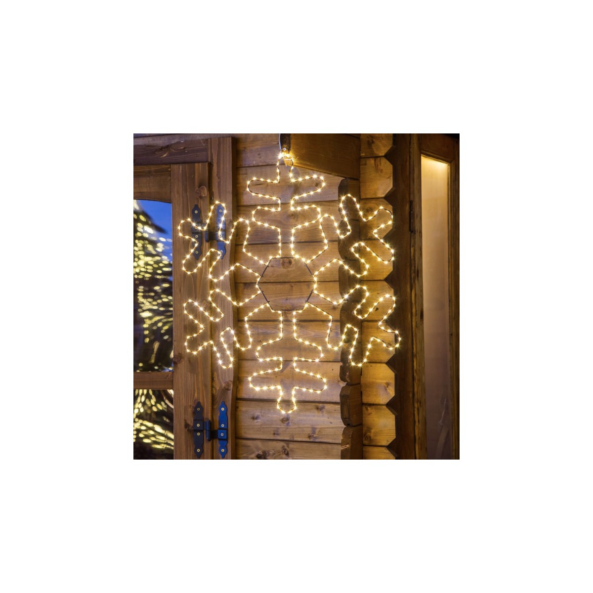 L'accattivante decorazione a LED è costituita da una struttura in metallo di 58 cm a forma di fiocco di neve ed è dotata di 360 LED di colore bianco caldo, che creeranno un'atmosfera piacevole. Un gancio regolabile consente di appendere il fiocco di neve luminoso e grazie alla sua protezione IP44 può essere utilizzato all'esterno.