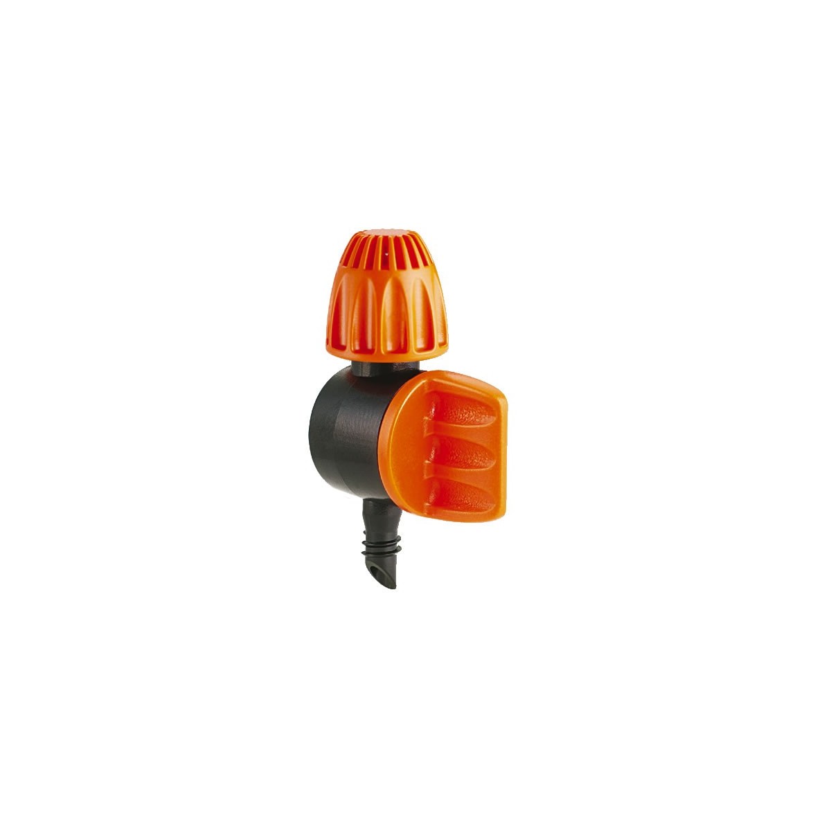 Microirrigatore che si applica ad incastro sul tubo collettore da 1/2” (13 - 16 mm), sul capillare da 1/4” (4 - 6 mm) o sulle astine rigide per sollevarlo da terra. Con rubinetto di regolazione e chiusura. Annaffia un’area a 360° con una pioggia delicata e uniforme.
