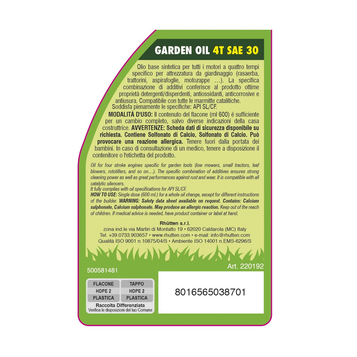 Olio Garden Sintentico 4T 600 ML Rhutten