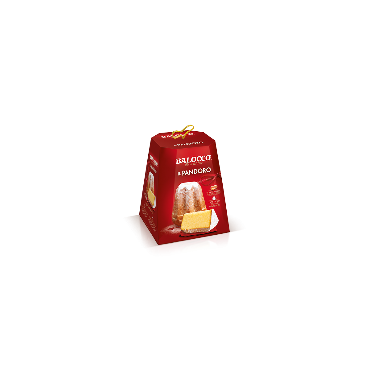 Tutta la passione Balocco in un Pandoro morbido e delicato preparato con latte fresco italiano alta qualità, uova da galline allevate a terra, nel rispetto della ricetta tradizionale.