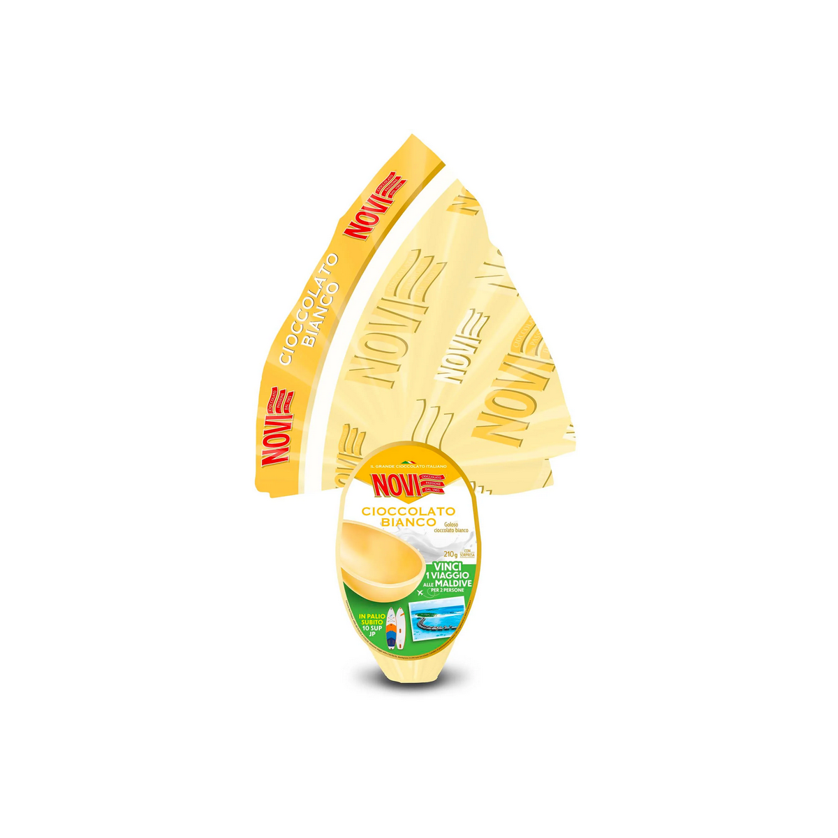Dentro l'uovo troverai una cartolina per partecipare al nostro tradizionale Concorso di Pasqua, nel quale quest'anno Novi mette subito in palio 10 SUP (stand-up paddle) della JP ma soprattutto - come superpremio ad estrazione finale - uno straordinario viaggio per 2 persone alle Maldive!