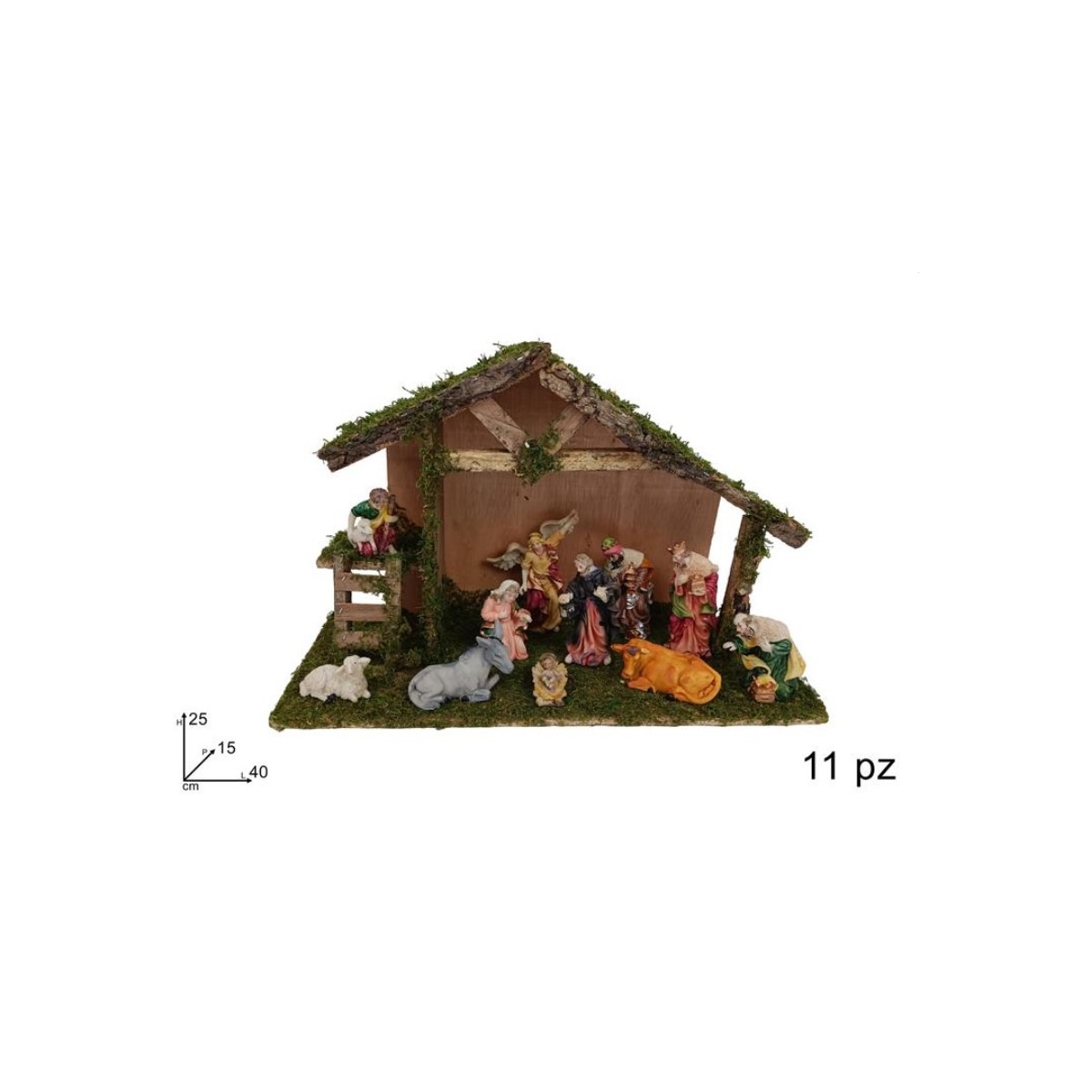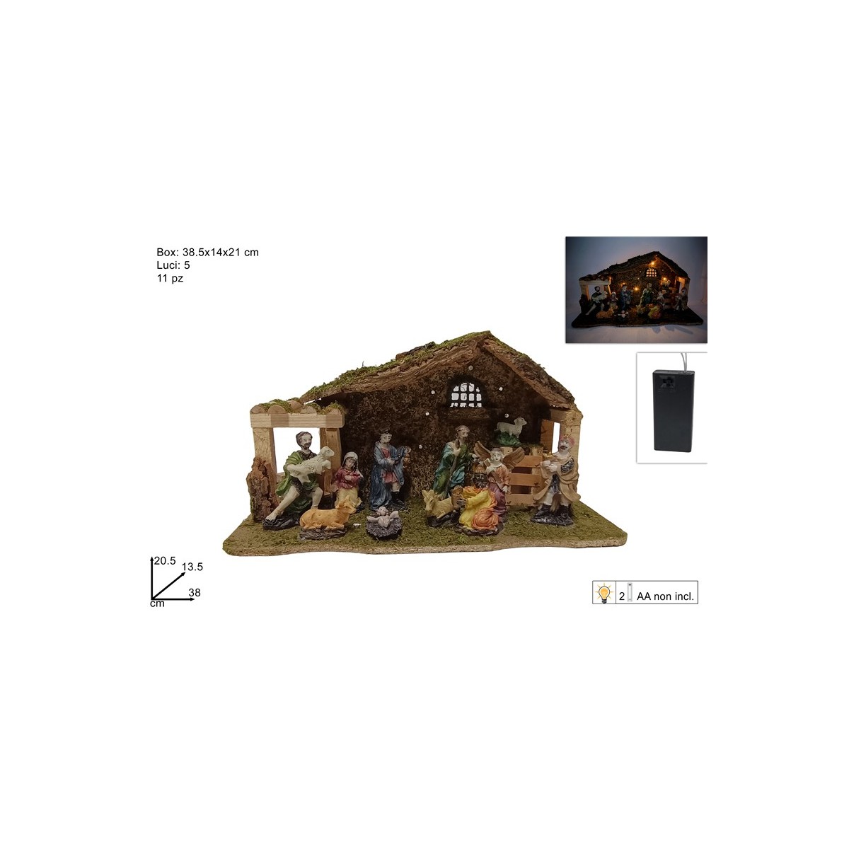 Capanna Natività con 11 personaggi e Luci