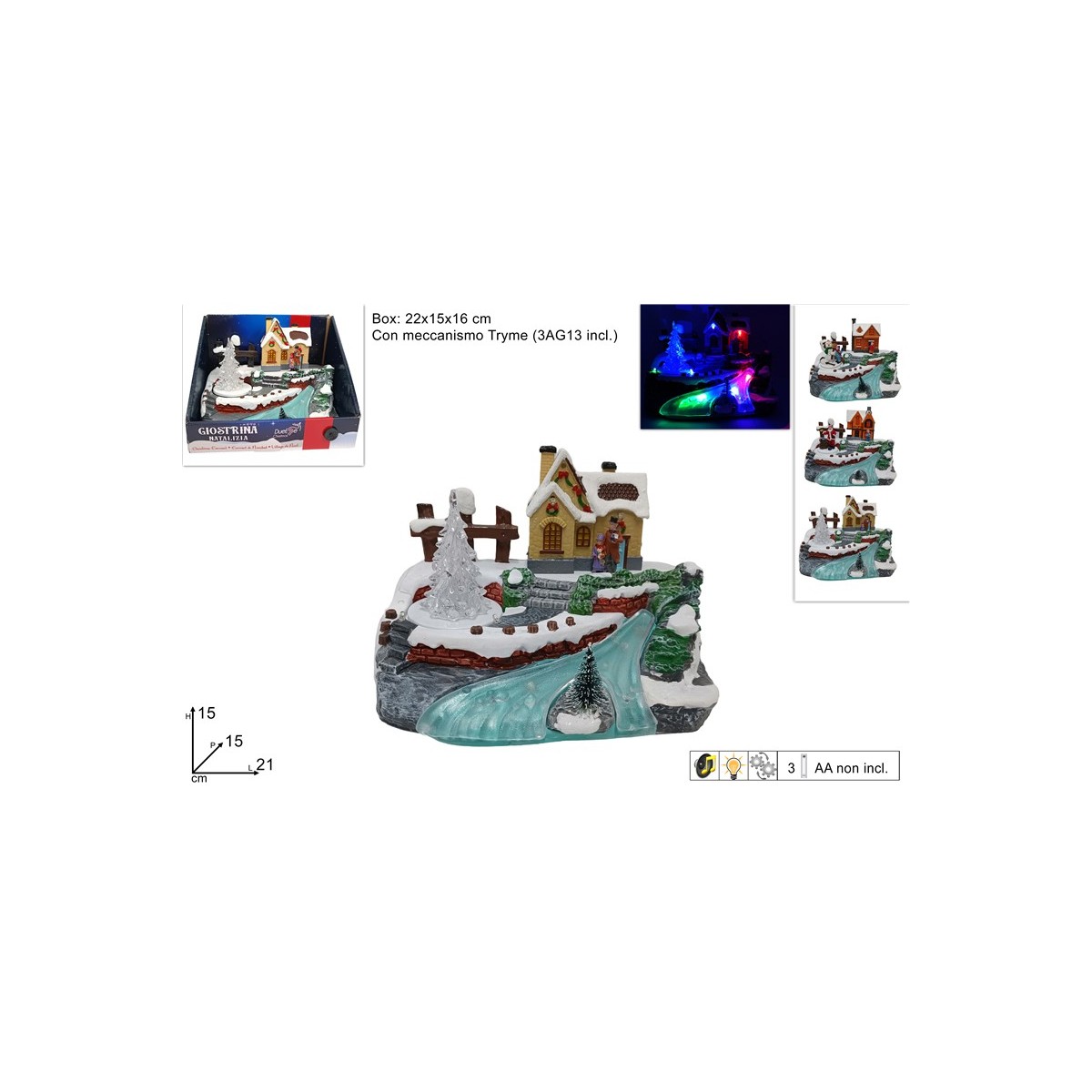 Giostrina Scenario Natalizio Casa c/Lago Movimenti e Luci DUE ESSE CHRISTMAS