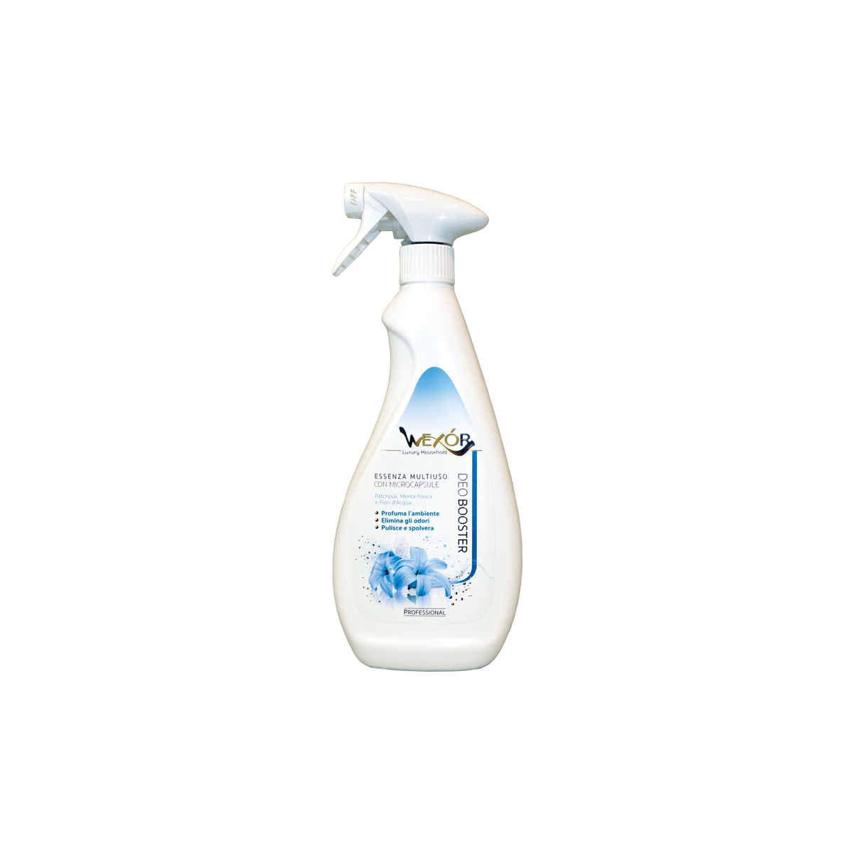 DeoBooster Fiori d’acqua Wexór è un’essenza ambiente dalla formula iperconcentrata: poche spruzzate in ambiente garantiscono un’ineguagliabile sensazione di “pulito profumato” di lunghissima durata, grazie all’altissima concentrazione delle preziose essenze e alla presenza delle microcapsule.