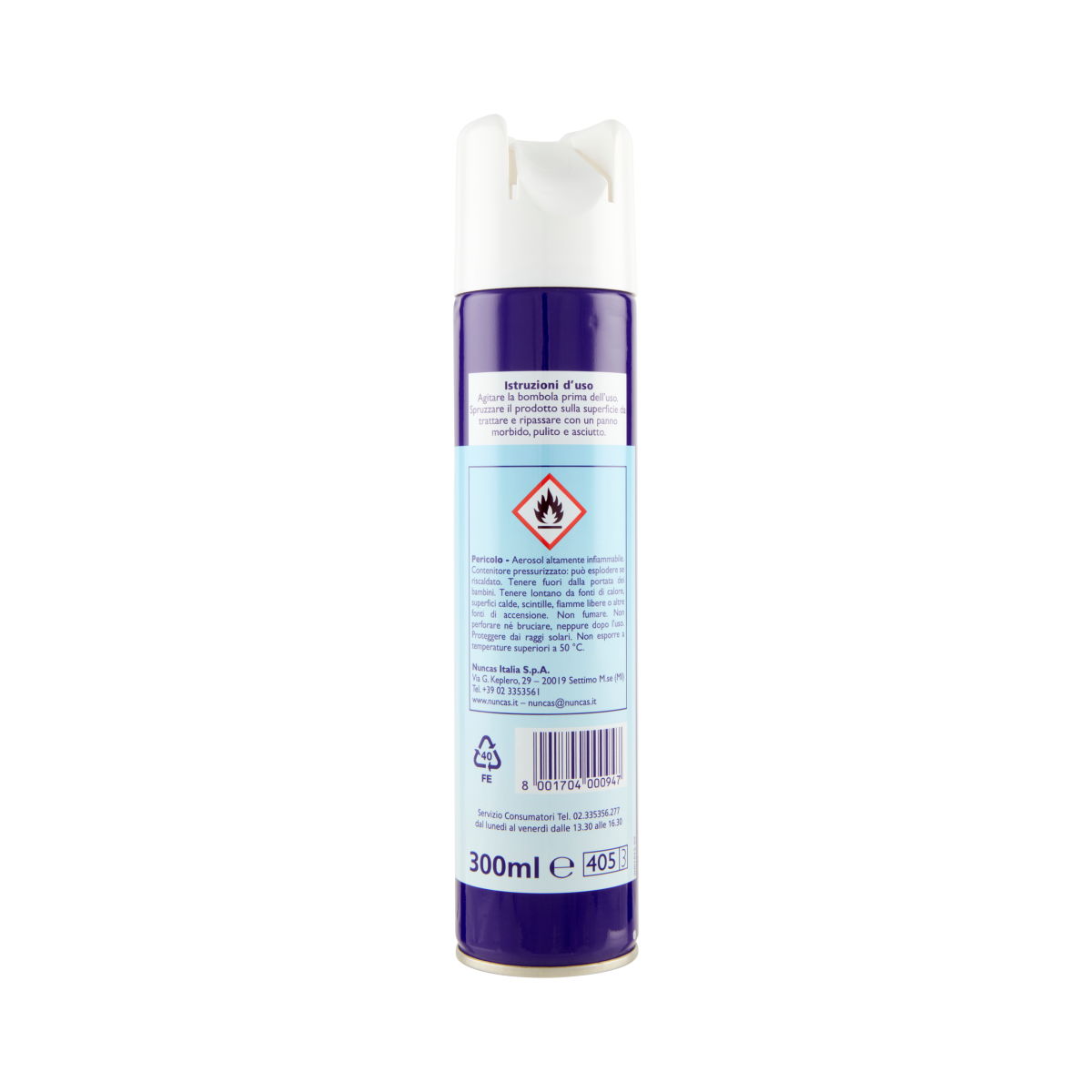 - Come si usa: agitare bene la bombola prima dell'uso; spruzzare il prodotto sulla superficie da trattare e ripassare con un panno morbido, pulito e asciutto