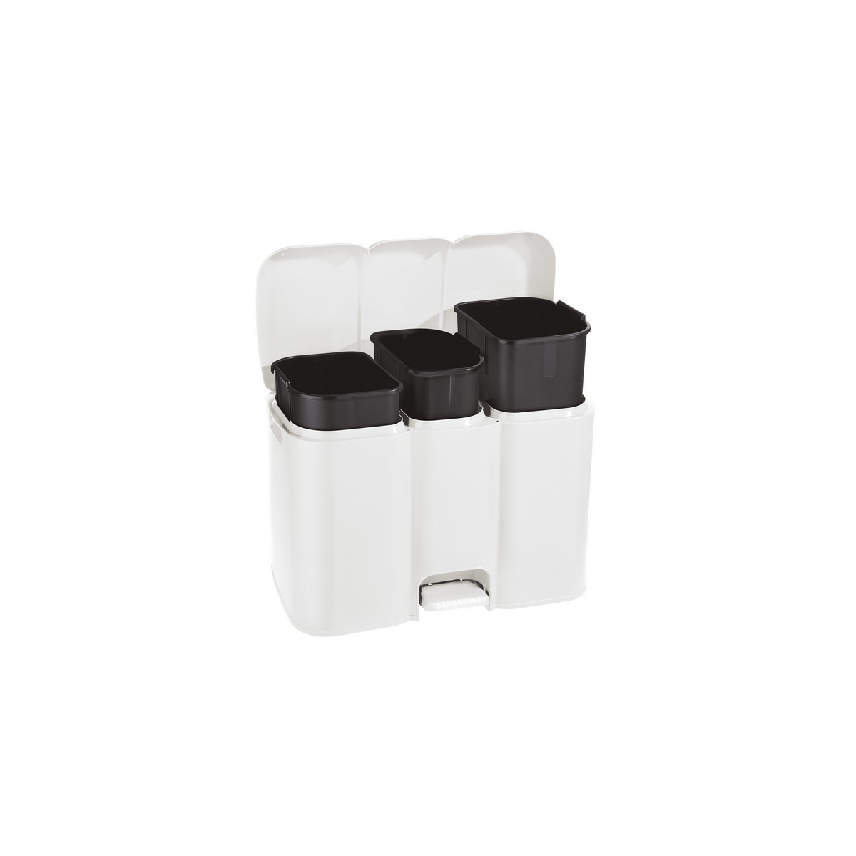 Una piccola pattumiera per differenziata dedicata agli spazi ridotti: grazie alla struttura compatta che riunisce in un'unica soluzione tre cestini estraibili di diverse dimensioni, infatti, il trio può essere collocato facilmente anche negli ambienti più ristretti per ottimizzare lo spazio a disposizione. La pratica apertura a pedale, inoltre, consente di accedere contemporaneamente ai tre cestini con un unico gesto in modo da individuarne immediatamente il contenuto.