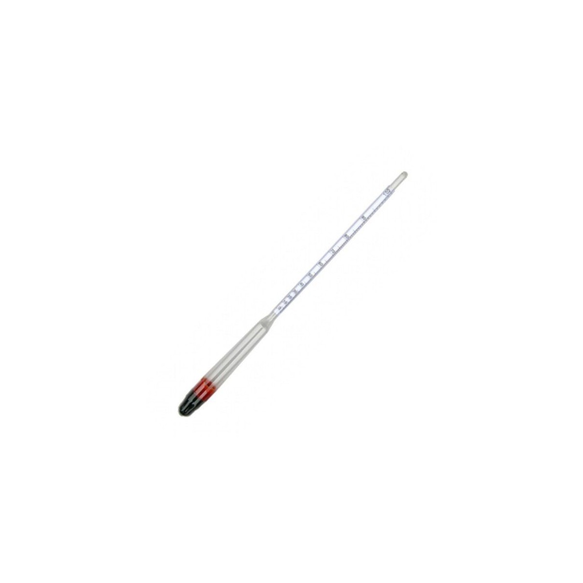 Alcolometro in plastica. Specifico per distillati. Utilizzo a temperatura ambiente. Scala da 0 a 100 in percentuale alcolometrica. Misura la quantita' d'alcool in percentuale in una soluzione di acqua e alcool.