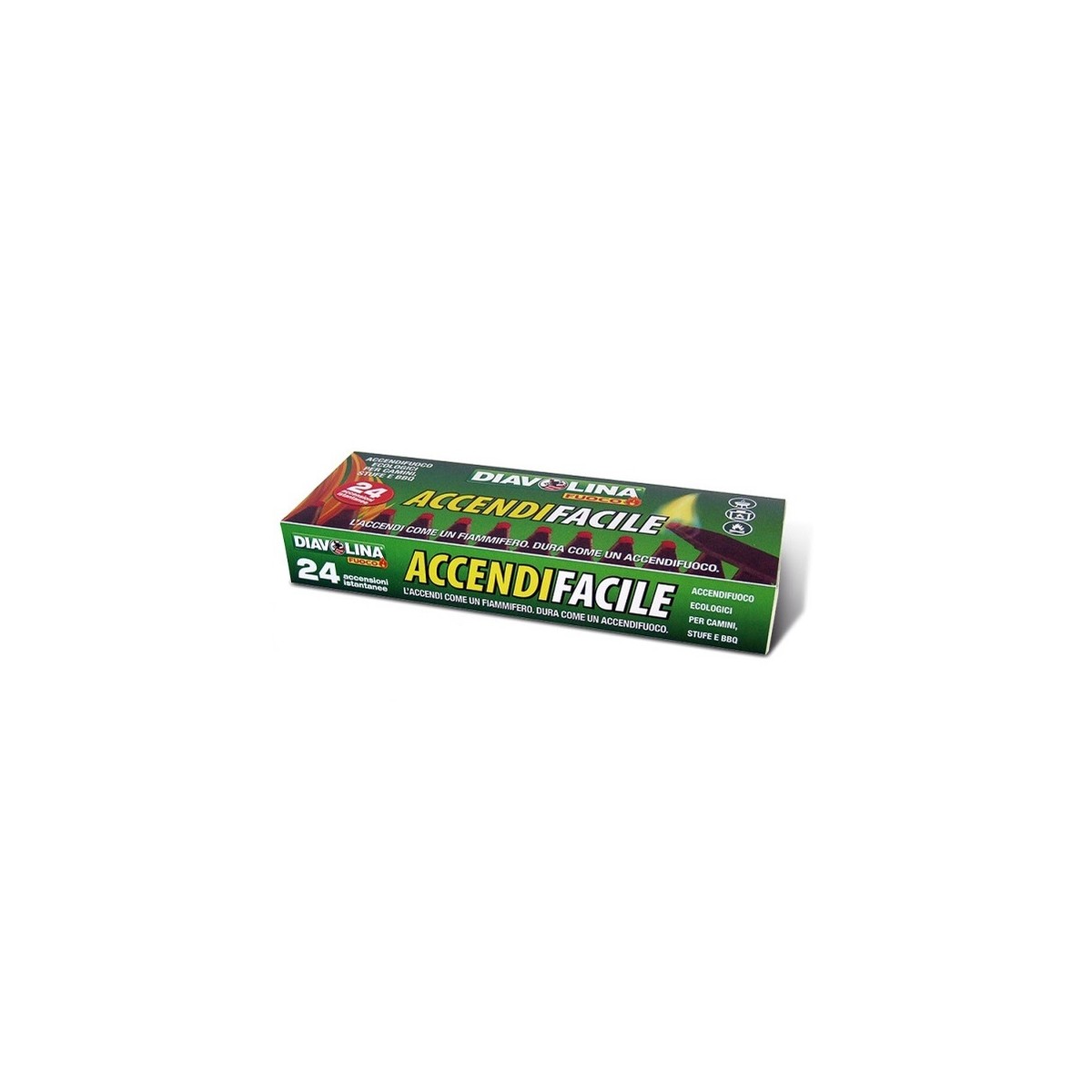 Con Diavolina Accendifacile non servono più i fiammiferi per accendere il camino o il barbecue. Basta sfregarli sul lato della scatole ed è fatta.
