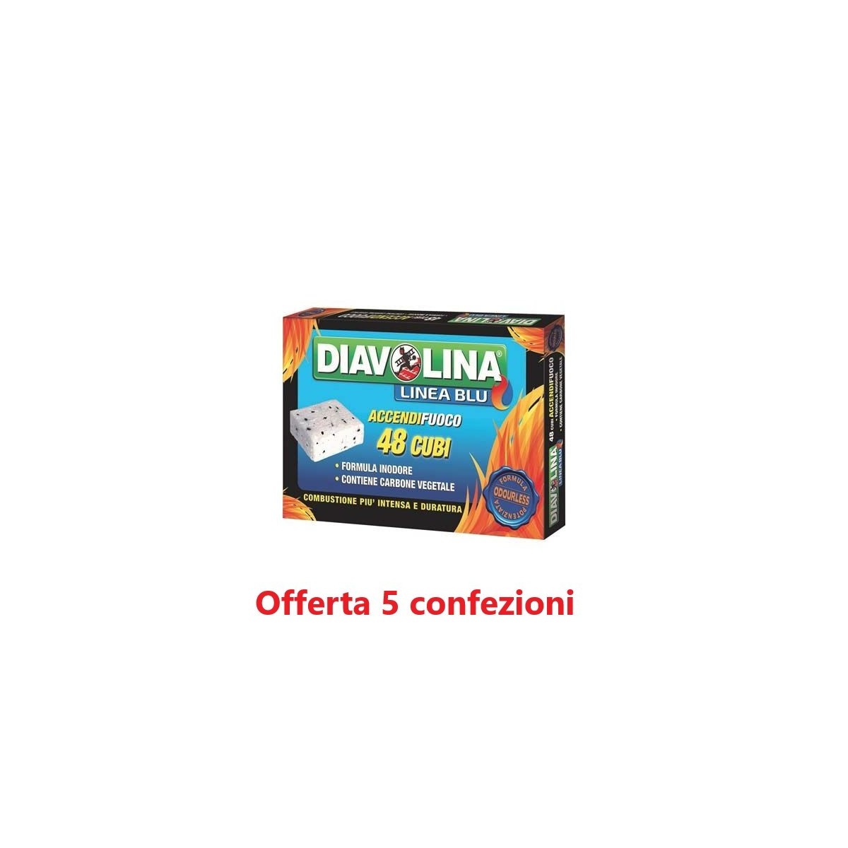 Offerta 5 Confezioni Diavolina Accendifuoco Linea Blu 48 Cubetti