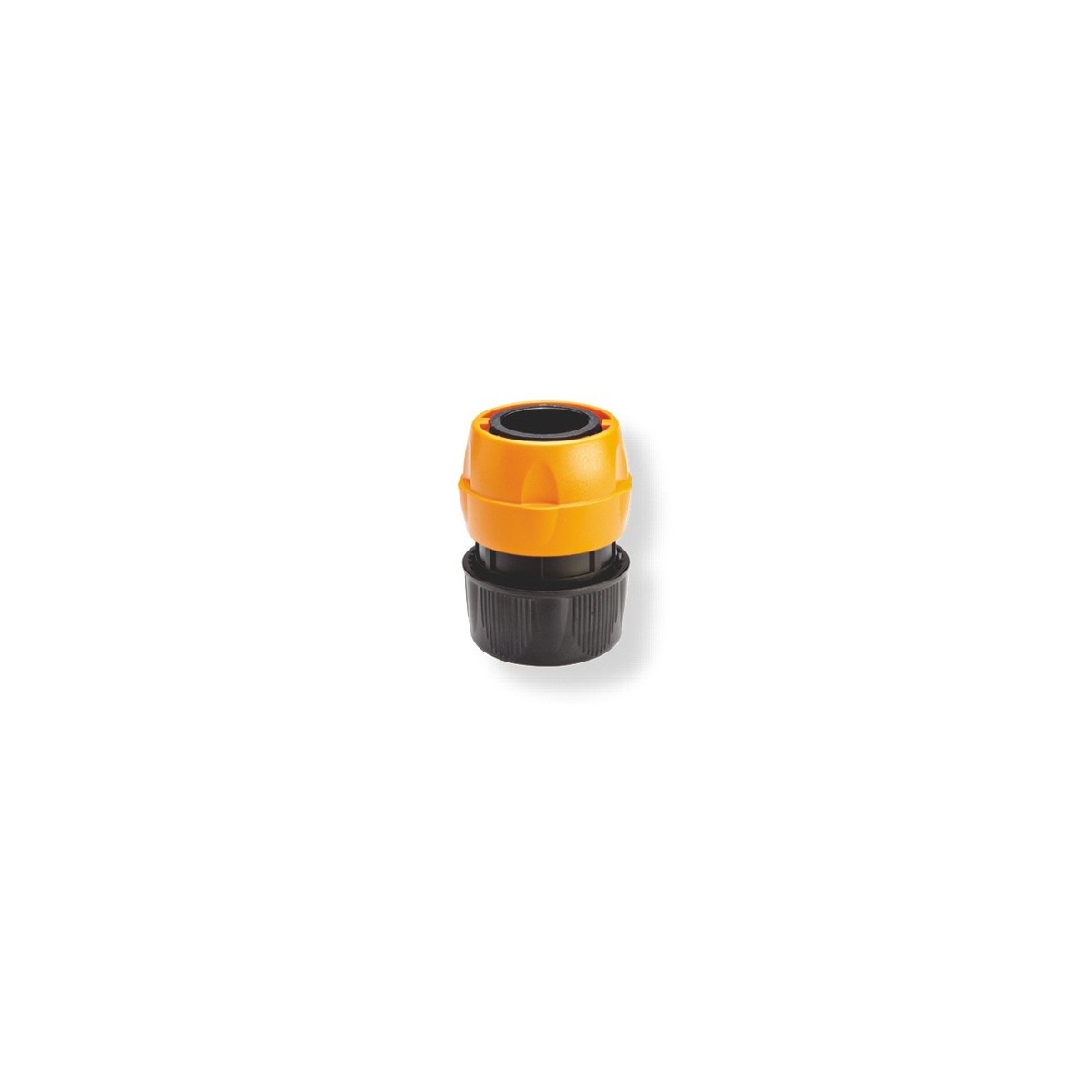 Raccordo portagomma "aperto" per collegare a scatto il tubo alla presa rubinetto. Passaggio d'acqua continuo.