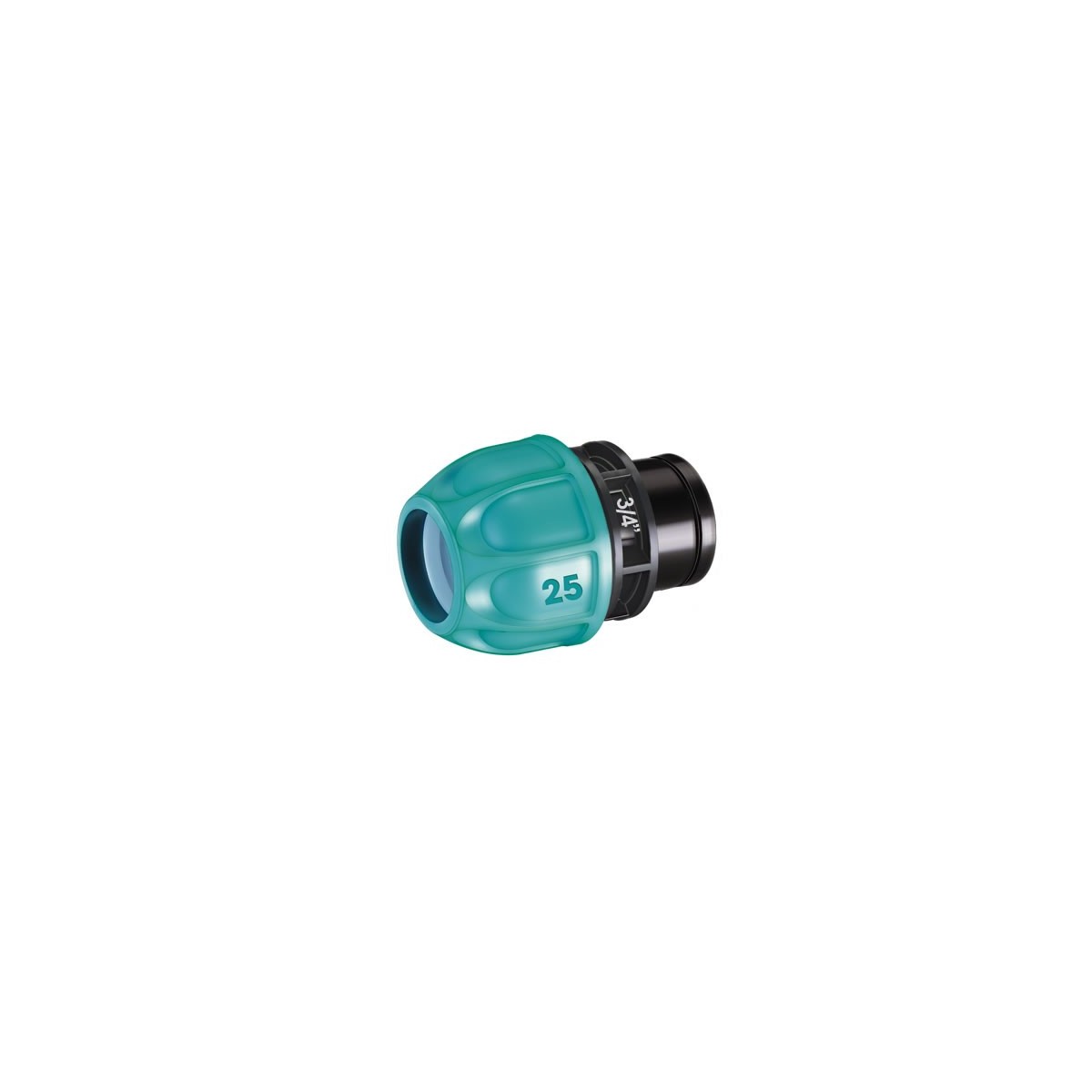 Questo componente serve a collegare a pressione un tubo in polietilene a un rubinetto filettato 3/4” (20 - 27 mm) o a una elettrovalvola con filetto maschio da 3/4” (20 - 27 mm).