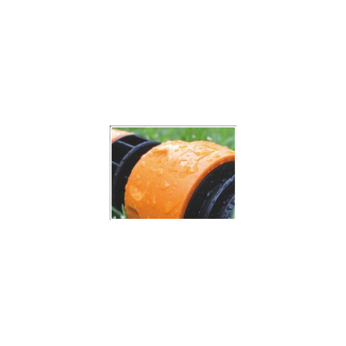 Utilizzabile con tubi di qualsiasi diametro. Per collegare a scatto il tubo alla presa rubinetto. Passaggio d'acqua continuo.