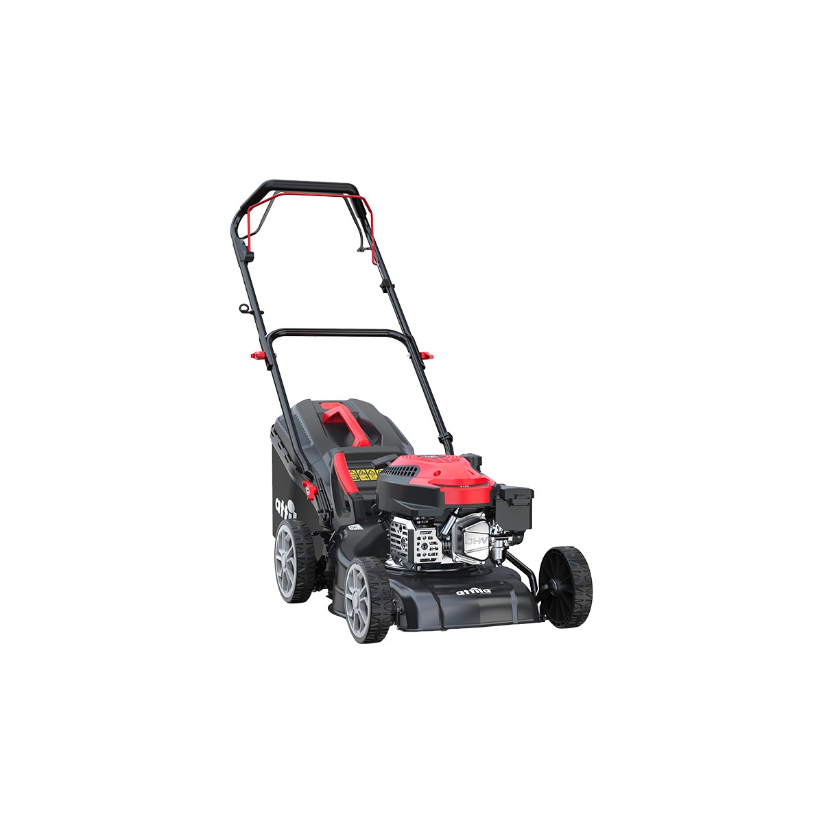 Rasaerba a scoppio a trazione ATTILA AT 435 S. Avanzamento a trazione, 1 velocità. Manico ergonomico interamente ripieghevole per un facile rimessaggio. Manico con impugnatura «Soft-Touch». Sacco in tela facilmente svuotabile, di grande capacità con top antipolvere - Segnalatore sacco pieno. Telaio in acciaio, con verniciatura epossidica, di facile manutenzione. Altezza di taglio facilmente regolabile tramite leva centralizzata. Ruote posteriori da 180/200 mm. Motore a valvole in testa potente, silenzioso e a basse emissioni.