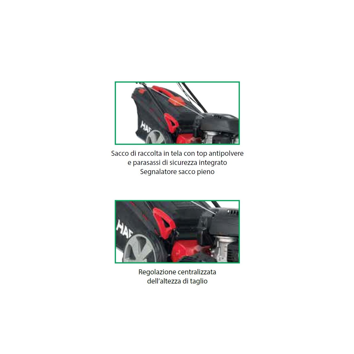 - Rasaerba HARRY Zero Turn HR 5300 SQZT. Funzione 4 in 1: raccolta, scarico posteriore e laterale, mulching. Manico ergonomico regolabile ed interamente ripieghevole per un facile rimessaggio. Manico con impugnatura "Soft -Touch" - Cruscotto comandi. Sacco in tela facilmente svuotabile, di grande capacità con top antipolvere. Telaio in acciaio, con verniciatura epossidica, di facile manutenzione. Ruote High Wheeler su cuscinetti a sfere. Ruote anteriori pivotanti bloccabili, tecnologia Zero Turn. Altezza di taglio facilmente regolabile tramite leva centralizzata. Motore HARRY potente, silenzioso e a basse emissioni.