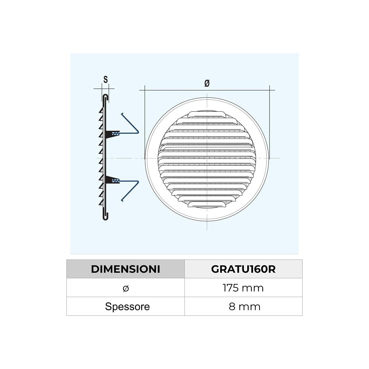 -Diametro esterno griglia 175 mm