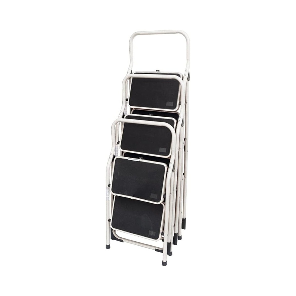 Sgabello in metallo per uso domestico. Pratico, leggero con ampie pedane ricoperte di gomma antiscivolo. Omologato EN 131. Disponibile nella versione a 2, 3 e 4 scalini.