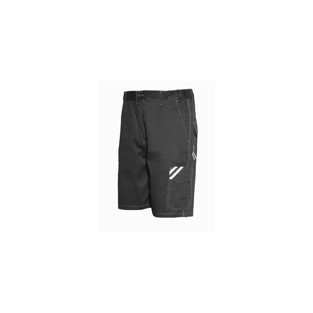 Bermuda stretch con inserti retroriflettenti, dotato di due tasche frontali, due posteriori coperte da pattina, una tascone laterale con soffietti ed una tasca porta metro. L’elastico in vita aumenta il naturale comfort del tessuto elasticizzato. Fornito in box.